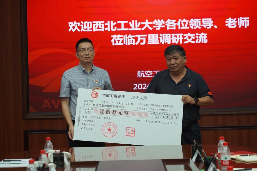 晁世元代表公司向自动化学院捐赠“志在万里”奖学金,支持学院持续开展“总师型”人才培养。