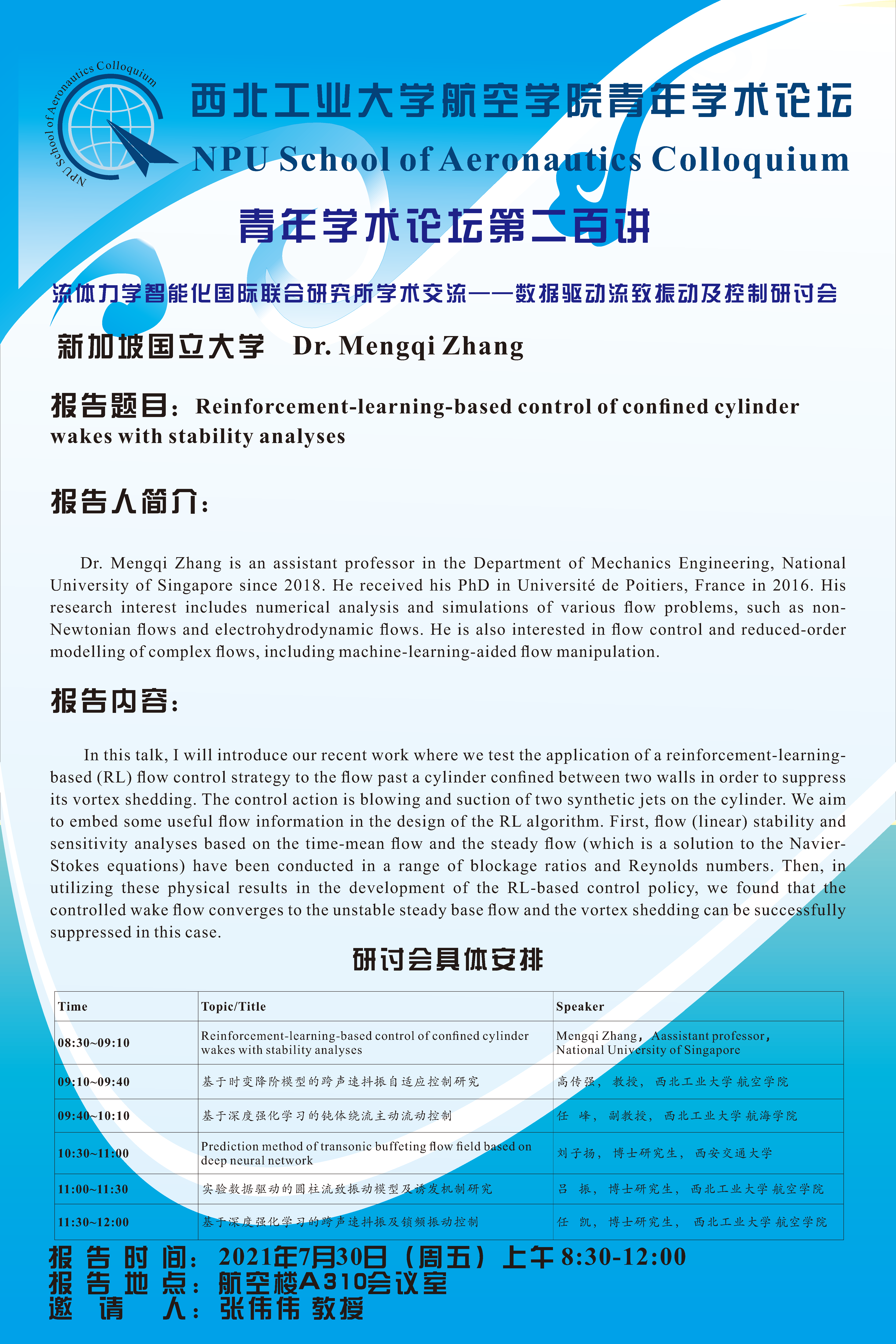【学术报告】西北工业大学航空学院 青年学术论坛第200讲--新加坡国立大学张蒙齐博士