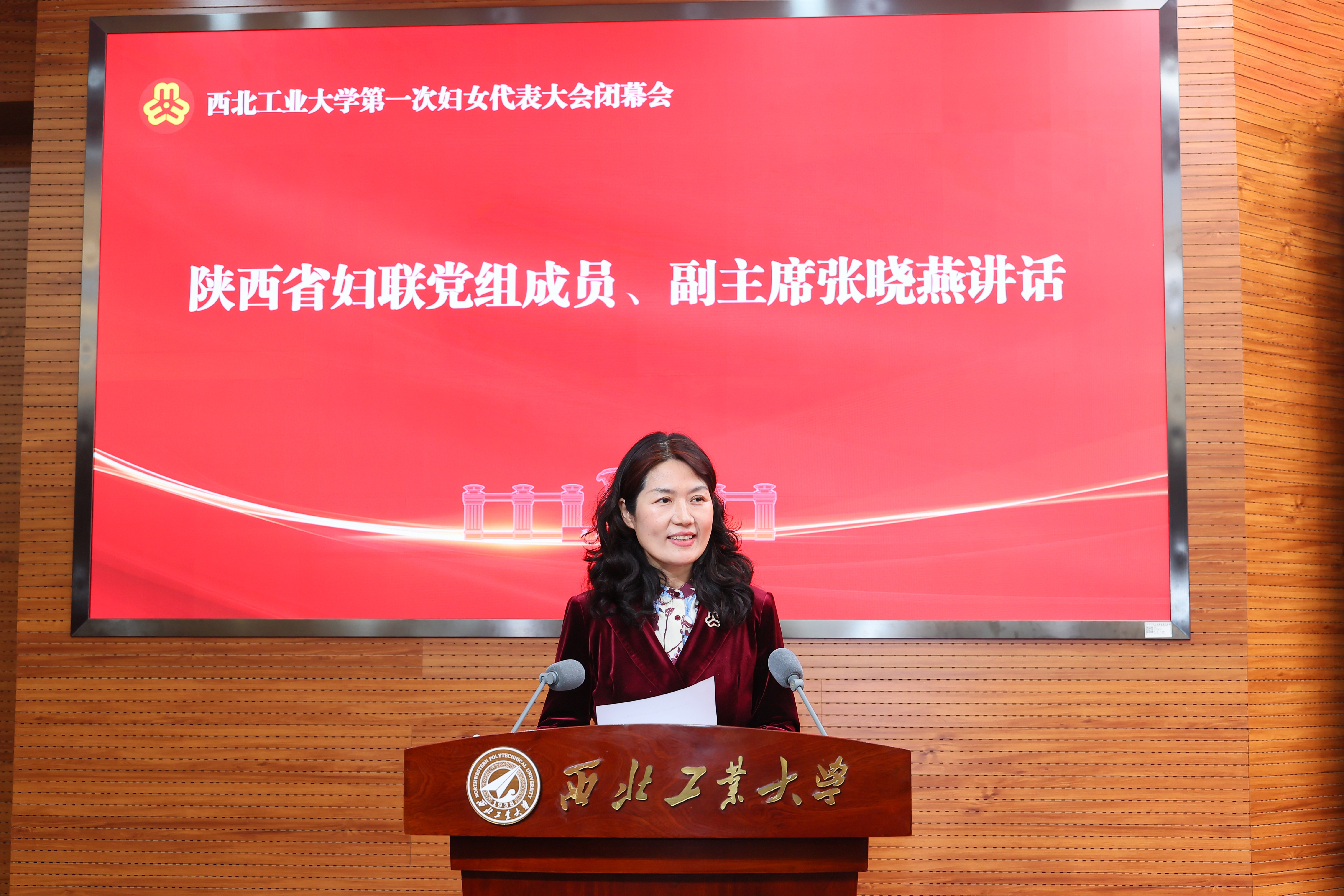 张晓燕代表省妇联,向大会的召开、向学校妇联的成立表示热烈的祝贺,向高度重视、大力支持妇女事业的学校党委表示衷心的感谢,向出席大会的全体代表和学校广大女教职工和女大学生致以节日的美好祝愿。她说,西北工业大学作为我国航空、航天、航海等领域人才培养和科学研究的重要基地,在国防科技事业中发挥着不可替代的作用。此次学校第一次妇女代表大会的召开,是我省妇联改革的生动实践,也是西工大妇女事业的重要里程碑,为学校妇女同胞们提供了组织依靠和发展平台,为学校的发展注入新的活力。希望学校妇联充分发挥党和政府联系妇女群众的桥梁纽带作用,引领学校女性自觉与新时代同行、为新目标奋斗、在新征程建功、做新时代新女性。