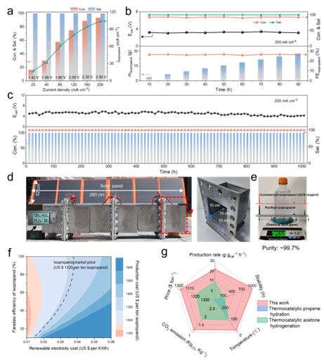羰基化合物还原是合成醇类大宗化学品、精细化工品和生物质精炼的核心反应。当前,工业领域该反应依赖于热催化加氢技术,但其需要高温(100-250℃)、消耗过量氢气作为氢源和贵金属基催化剂,存在高能耗、高成本与安全隐患。相比之下,利用可再生能源产生的电能,在常温常压下驱动电催化羰基加氢是一种极具前景的技术路线。但竞争激烈的副反应(析氢、碳碳偶联、脱羟)、差的稳定性等瓶颈难题,导致电催化羰基加氢的转化率、醇选择性和生产速率远低于热催化技术。