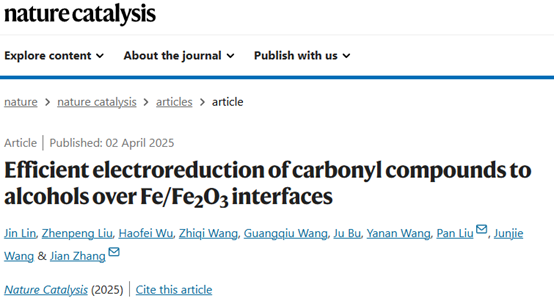 北京时间2025年4月2日,西北工业大学材料学院材料前沿交叉研究中心张健教授团队在国际著名期刊《自然•催化》(Nature Catalysis)在线发表了题为“Efficient electroreduction of carbonyl compounds to alcohols over Fe/Fe2O3interfaces”的研究论文。