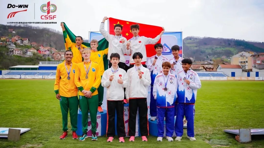 2025年U15世界中学生夏季运动会激战正酣,来自西工大附中初三年级学生刘晓桐以优异表现闪耀国际赛场,继4月8日摘得男子4×100米接力金牌、4月9日问鼎跳远项目冠军后,4月10日在男子1000米异程接力赛中,刘晓桐与队友以2分0秒15的成绩再次夺冠,并打破了该项目2分1秒01的赛会纪录。