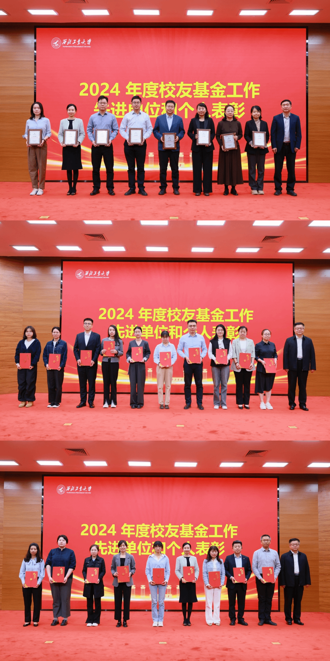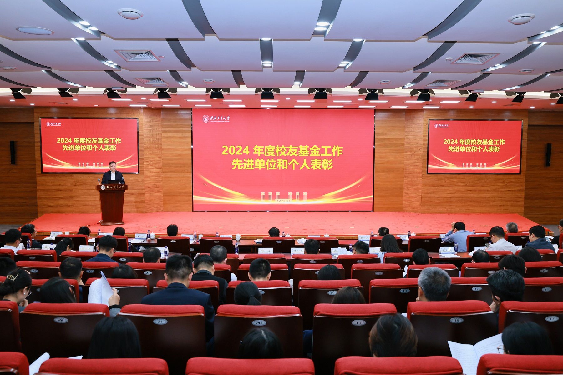 会议还对2024年度的校友和基金工作先进单位和个人进行了表彰,王宇波宣读表彰文件。