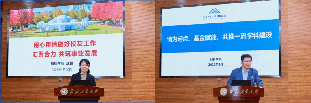 航空学院党委副书记赵超、材料学院学院党委书记李恒,交流了学院开展校友和基金工作的实践和体会。
