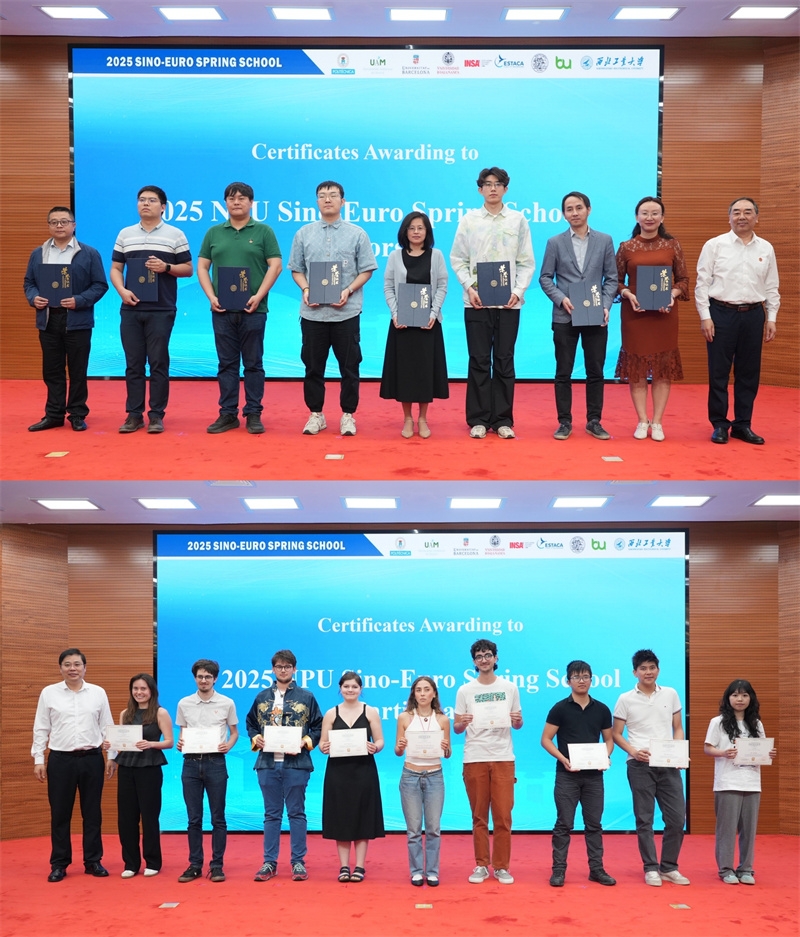 4月30日,在中欧建交50周年之际,2025年中欧春校(2025 NPU Sino-Euro Spring School)闭幕式在友谊校区落下帷幕。副校长兼研究生院院长岳晓奎出席闭幕式并向春校教师代表颁发荣誉证书,国际合作处处长孔杰向中外学生代表颁发结业证书。党委学生工作部、研究生院、教务部、体育部、航天学院、航海学院、机电学院和柔性电子研究院相关负责同志出席闭幕式。