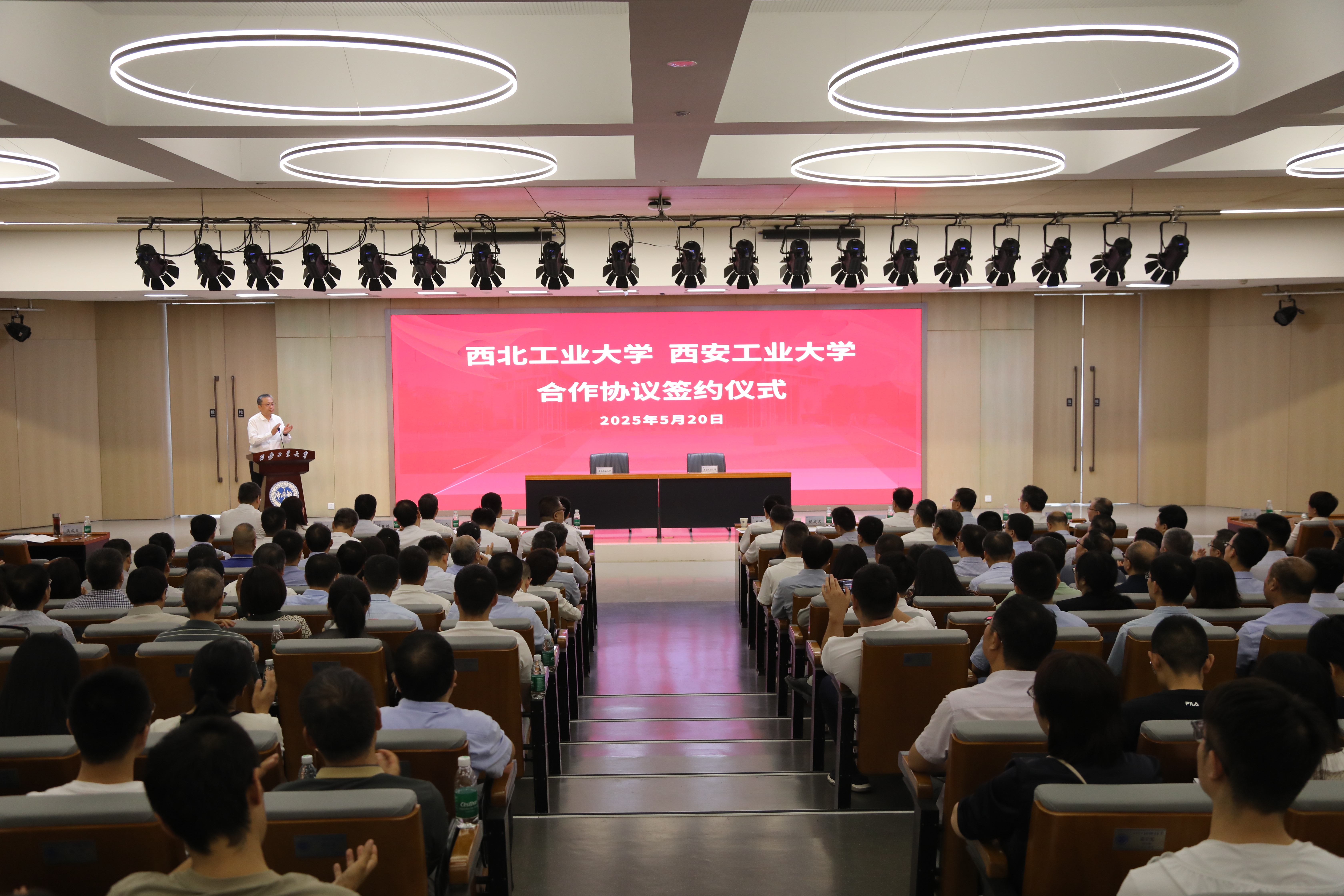 5月20日上午,鸭脖官网党委书记李言荣,副校长王伶一行赴西安工业大学参加两校合作框架协议签约仪式。陕西省教育厅副厅长何玉麒,西安工业大学全体校领导、学校中层干部和师生代表300余人参加签约仪式。西安工业大学党委书记侯成义主持仪式。