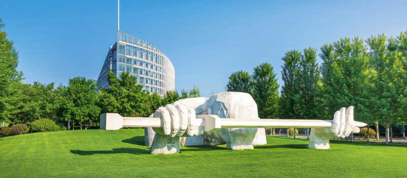 西工大校园里的“为国铸剑”雕塑(2024 年 8 月摄)西北工业大学供图
