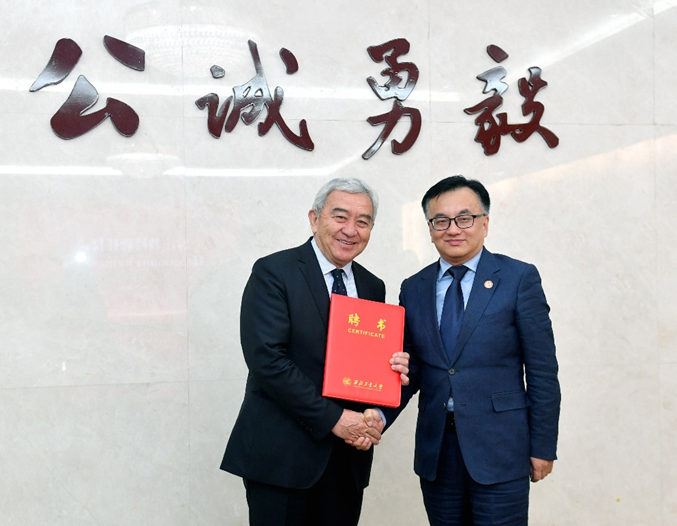 会议还举行了阿贝拉别克·阿桑卡诺夫院士受聘西北工业大学客座教授仪式,由吕卫东为其颁发聘书并佩戴校徽。阿桑卡诺夫是吉尔吉斯共和国国家科学院院士、历史学家、民族学家,现任吉尔吉斯共和国国家科学院历史、考古和民族研究所所长。阿桑卡诺夫表示,将积极推进双方间的科研合作和学术交流,为促进中吉文化互鉴贡献力量。