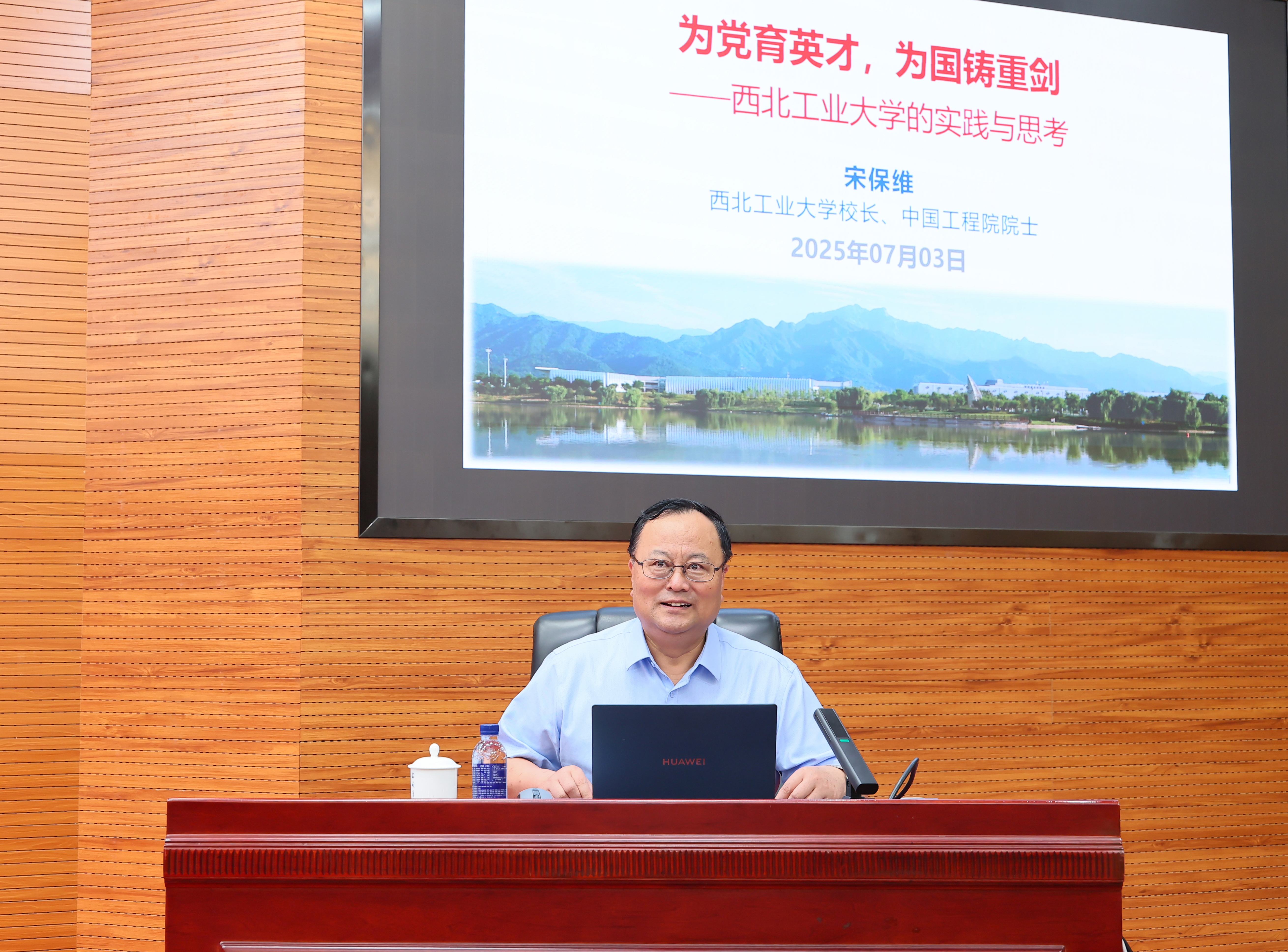 宋保维为全体新进教职工作题为《为党育英才 为国铸重剑——西北工业大学的实践与思考》的入职培训。宋保维结合自己在西工大43年的学习和工作经历,从“三脉融合,一所有底蕴的大学”“育人铸剑,一所有担当的大学”“继承创新,一所有追求的大学”三个方面带领新进教职工回顾了学校的发展历程、校情校貌,介绍了学校的办学定位、人才培养特色、师资队伍等,并对“127”近期发展目标以及“天下工大、世界三航”远景目标的内涵意义,实现目标的任务举措进行了深入阐释。他说,高质量的师资队伍是一所大学发展的关键变量,入职培训是大家了解学校、爱上学校,从而与学校成为命运共同体的重要途径。他说,近年来,学校不断深化教育、科技、人才领域改革,推进各项事业高质量内涵式发展。当我们干事创业的精气神充分发挥出来了,高标准也就成了日常标准、高水平也就成了日常水平、高位也就成了日常定位。希望全体教职工做高尚师德的践行者,做学生求学的引路者,做科技创新的开拓者,只要我们齐心协力、目标一致,学校的发展目标、我们每个人的发展目标也必能圆梦如愿。