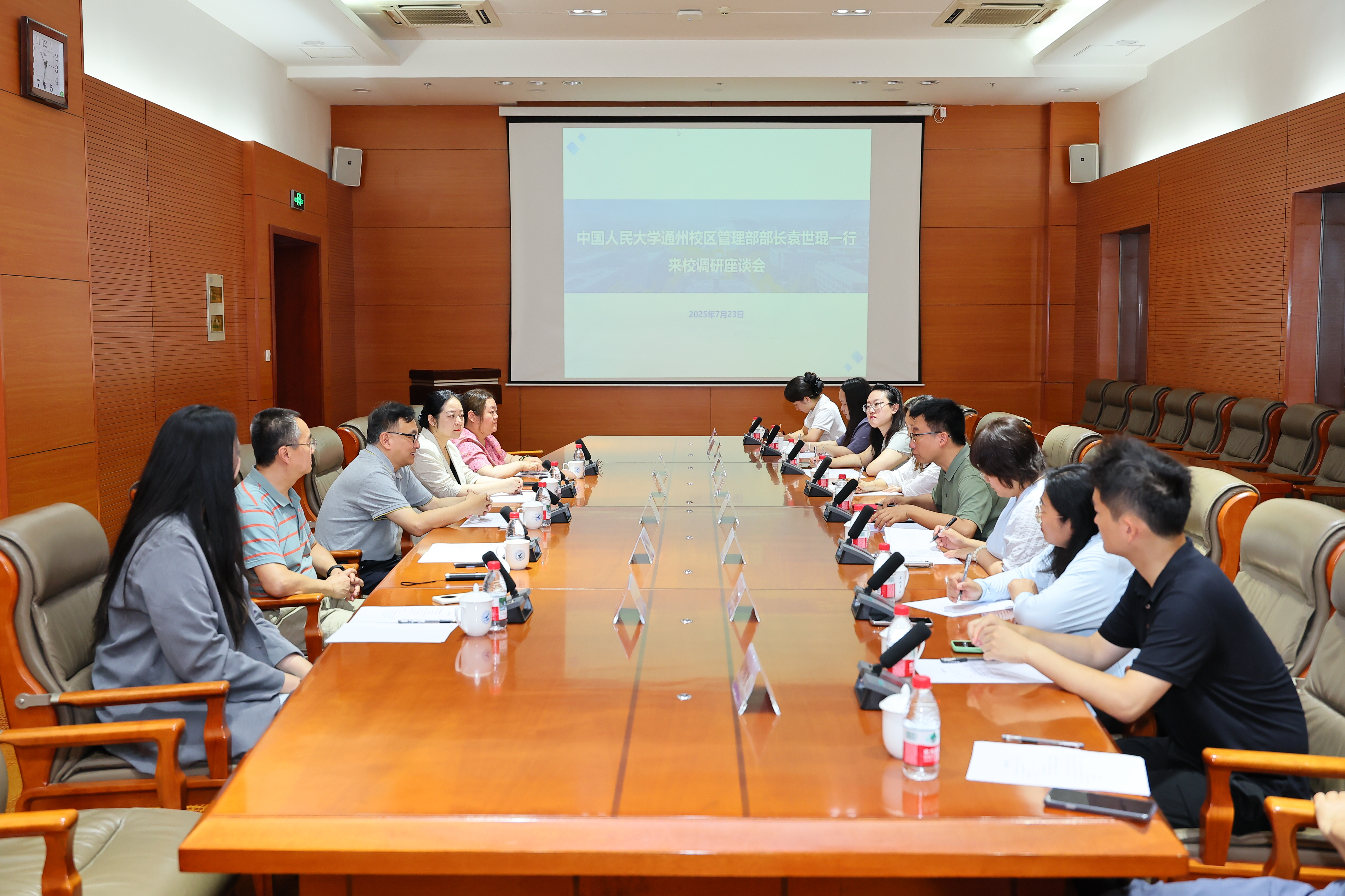 7月23日上午,中国人民大学通州校区管理部部长袁世琨一行来校调研。鸭脖官网党委常务副书记吕卫东参加座谈会。