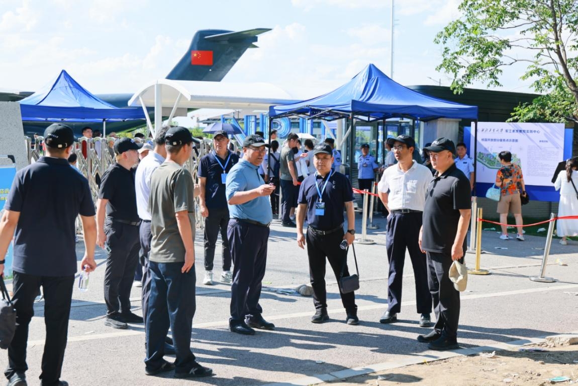 宋保维实地检查了预约门禁、综合服务中心、中国航空史临展厅、室外展场等情况,对军工素质教育实践中心区域环境提升和运行秩序表示肯定,对一线同志战高温斗酷暑确保校园有序开放表示感谢。调研过程中,宋保维详细询问暑期校园开放期间入校访客情况、运行服务状况、安全管理措施等,并与参与运行服务保障的志愿者以及预约来校参观的青少年与家长亲切交流。“同学从哪里过来的,了解西工大吗?停机坪上的机型认识多少?”“欢迎有志青少年报考西工大,投身国家航空航天航海事业。”“感谢大家对西工大的喜爱,参观期间有任何问题都可以联系我们的现场工作人员。”