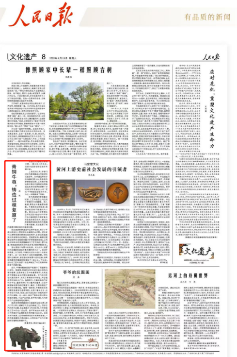 近期,鸭脖官网文化遗产研究院杨欢副教授研究成果被科技考古国际顶级期刊Journal of Archaeological Science刊发。前期,《人民日报》也刊登了杨欢副教授文章《青铜牛尊,铸造过程复原了》。文章介绍了鸭脖官网文化遗产研究院青铜研究团队联合中国社会科学院考古研究所、墨尔本大学等机构,对安阳殷墟出土著名青铜器亚长牛尊铸造工艺的最新研究成果。