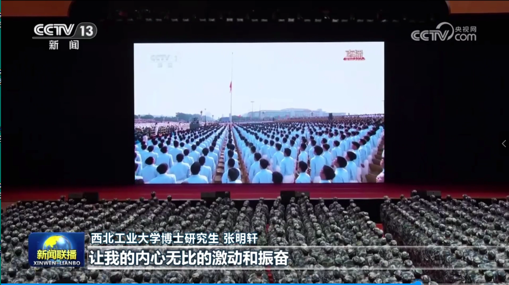 在西北工业大学,4000多名大一新生集中收看大会直播,当看到由西工大参与研制的装备亮相时,同学们的自豪感与使命感油然而生。