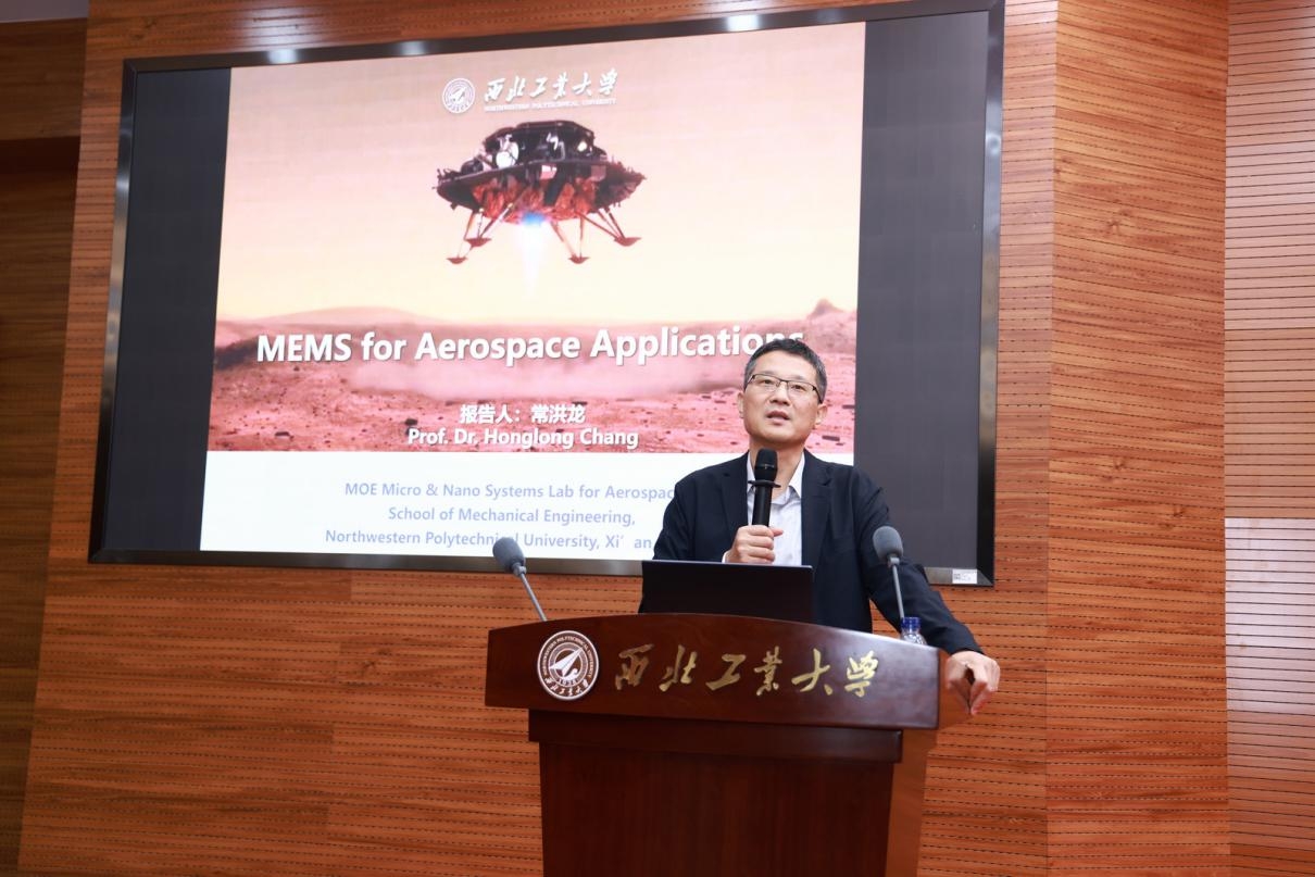 在大会报告环节,三位专家学者围绕关键领域作了高水平学术分享。浙江高档数控机床技术创新中心首席科学家陈泽忠教授介绍了大飞机碳纤维复合材料蒙皮智能加工核心技术的研发突破;中国五矿株洲钻石切削刀具股份有限公司高级工程师曾滔分享了先进刀具研发平台在深孔钻设计优化中的实际应用;西北工业大学机电学院院长常洪龙教授则聚焦MEMS技术在航空航天中的应用与前景。