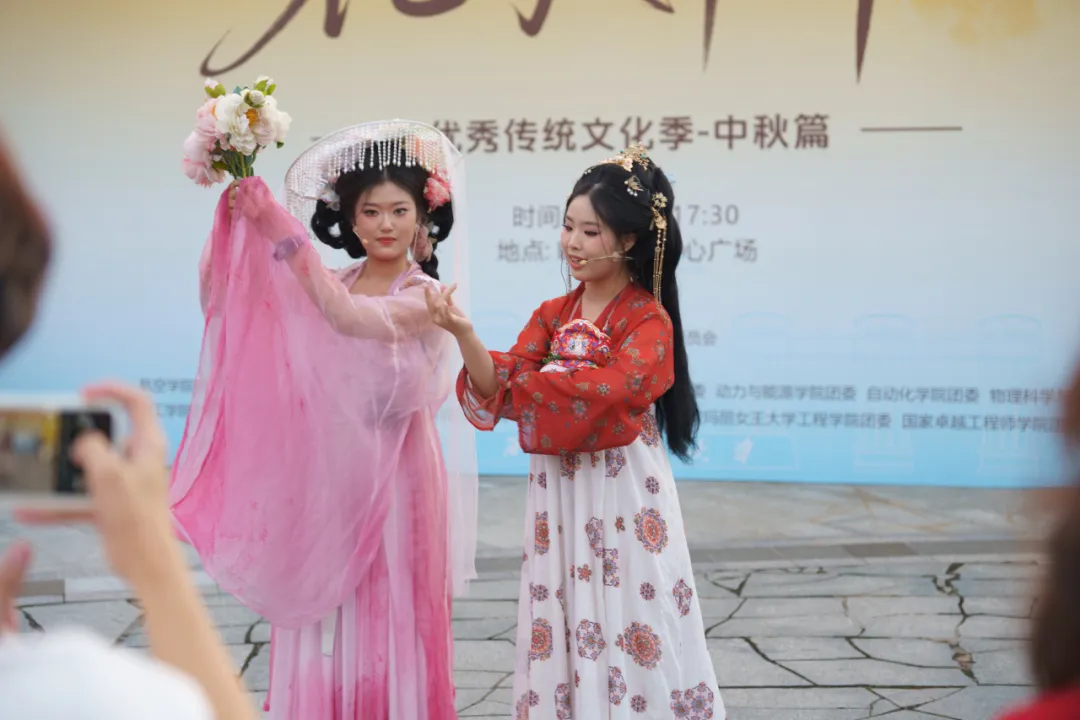 9月29日傍晚,校团委举办“礼敬中华”优秀传统文化季——中秋篇活动,全校千余名师生共襄文化盛宴,共庆中秋佳节。本次活动以“月下邮局,集章寄情”为主线,精心设置了“指尖绘秋,丹青映月”“巧手制月,甜蜜团圆”“同心运月,协力归途”“扇载中秋,笔铸军工”等十大传统文化体验区,师生们在国风雅韵的氛围下,绘花灯享团圆之乐,着汉服品古风之韵,制月饼悟劳动之趣,摄美景留当下之念,用一场穿越时光的相遇,让中华优秀传统文化在校园里“活”了起来。