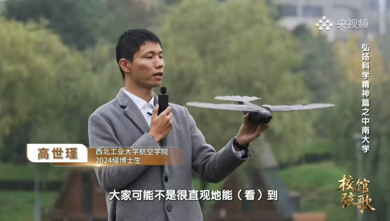 西北工业大学航空学院2024级博士研究生高世瑾:“我们这架飞机最主要的难点有两个。第一个是怎么让它有劲。大家可能不是很直观地能看到,但是真正它在飞起来的时候,以很快的这个速度去扑起来的时候,它的翅膀不是这种刚性的,不是这种一成不变的,而是会随着扑动,会有一定的柔性变形。在有了劲之后,那怎么让它飞得好呢?就是我们这个飞机上,别看它小,但是它有一个微型的机载计算机,可以实时去感知它现在飞行的状态,包括它现在飞了多高、飞了多快、飞到了哪。”