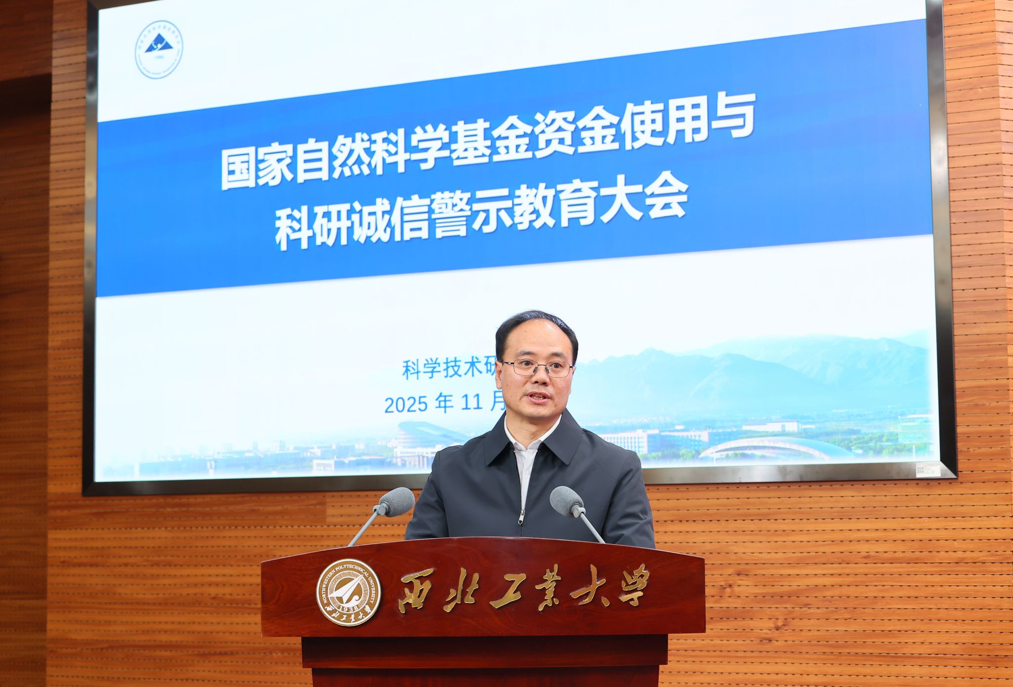 11月28日,鸭脖官网在友谊校区召开国家自然科学基金资金使用与科研诚信警示教育大会。大会特邀国家自然科学基金委员会办公室(科研诚信建设办公室)副主任郭建泉作专题报告。副校长、校学术道德建设委员会主任张艳宁院士,相关职能部门负责同志,各学院(研究院)分管领导,国家自然科学基金2025年度立项项目负责人等共300余人参加会议。会议由副校长兼科学技术研究院院长王伶主持。