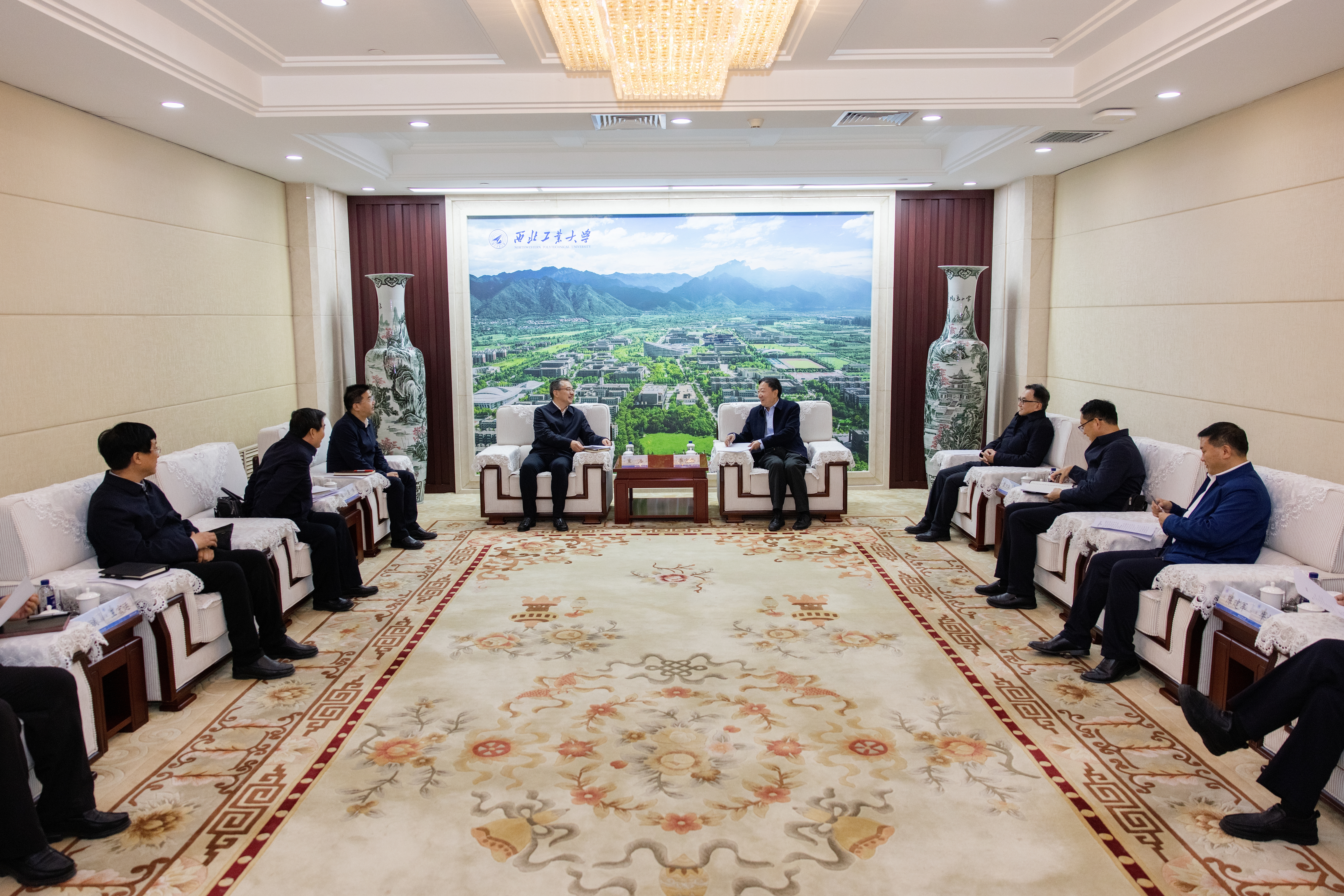 李言荣对王浩一行表示欢迎,并简要介绍了学校的办学特色。他说,近年来渭南市经济社会发展势头良好,特别是在新能源、现代农业、文旅产业等领域取得的成就令人印象深刻。西工大与渭南市有着深厚的合作基础,特别是近年来在定点帮扶、教育协作、产业对接等方面取得了积极成效。学校将充分发挥“三航”特色和工科优势,深化校地协同、加强人才交流、拓展教育帮扶、赋能乡村振兴,尤其是在人工智能、新能源、新材料等领域开展协同科研,推动科技成果转化,为地方发展做贡献。