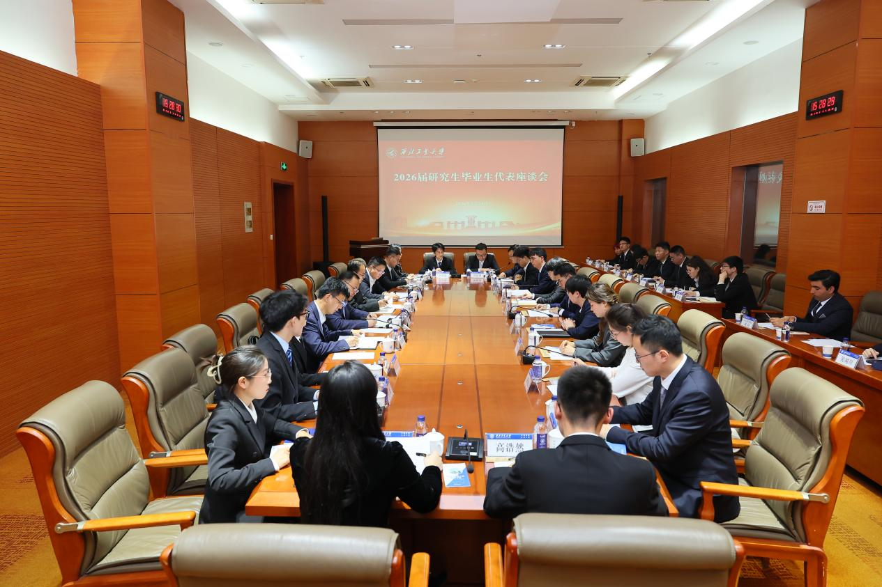 3月24日,鸭脖官网2026届研究生毕业生代表座谈会在长安校区举行。校长宋保维,副校长王伶,校长助理王宇波及相关职能部门负责人与来自各培养单位的27位优秀研究生毕业生代表亲切交流,聆听毕业心声,共话青春梦想,为即将启程的学子们送上最真挚的祝福。座谈会由副校长张富利主持。