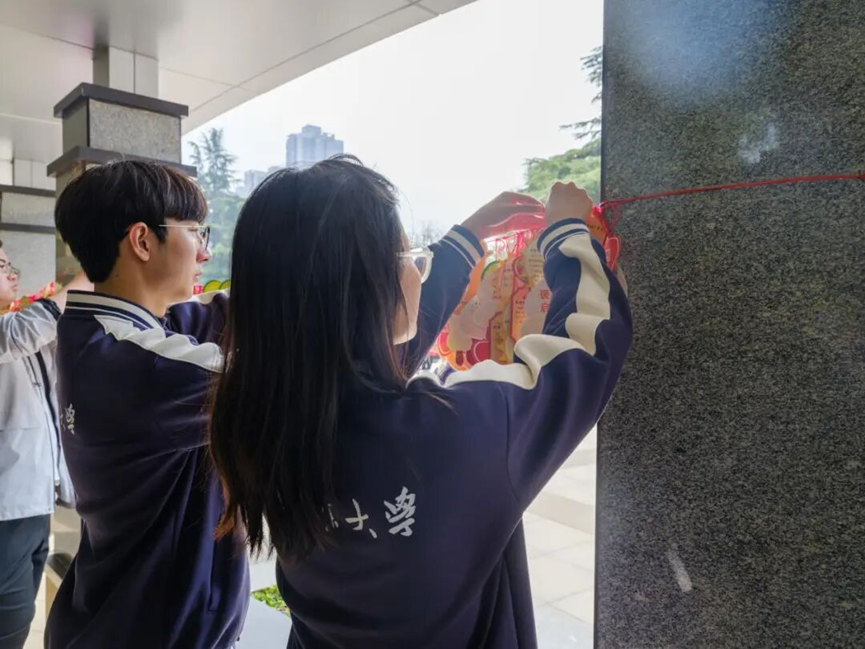 仪式结束后,同学们手持鲜花,依次前往烈士墓碑前敬献鲜花、追思缅怀,将崇敬与哀思寄于朵朵鲜花之中。“山河无恙,英雄不朽”“传承是最好的纪念,奋进是最好的致敬”……大家还精心写下对先烈的深情寄语,悬挂于陵园长廊,字里行间饱含着对英雄的追思与致敬。