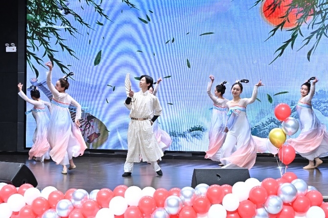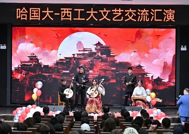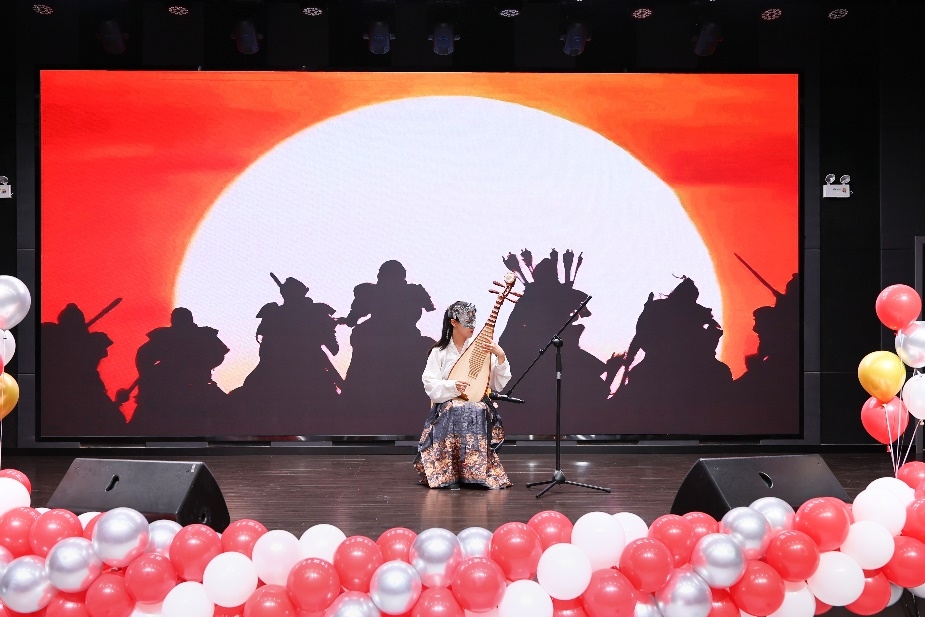 鸭脖官网大学生艺术团的同学们也以精彩演出回应远道而来的朋友。民乐合奏《四海平》以清和雅正的旋律奏响四海升平、睦邻友好的美好愿景;舞蹈《春和景明》以灵动的舞姿铺展春风送暖、万物竞发的明媚图景;琵琶独奏《兰陵王入阵曲》则铿锵激越、气势昂扬,在拨弦翻飞之间传递出英雄传奇的壮怀与中华优秀传统文化的独特神韵。