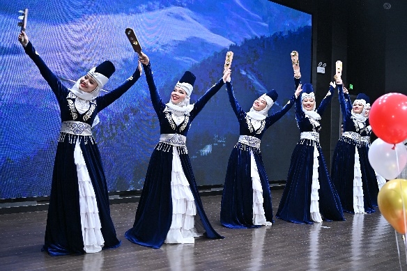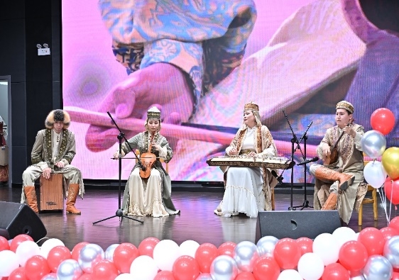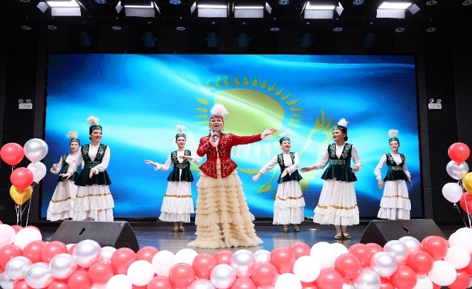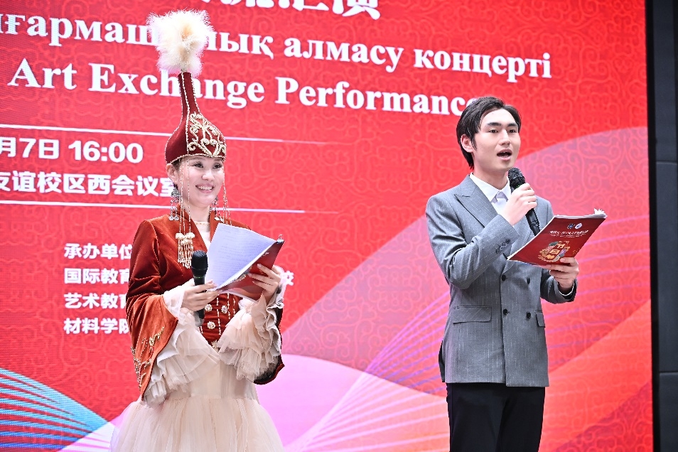 活动现场气氛热烈、掌声不绝于耳。来自“阿里·法拉比”哈萨克国立大学的师生带来了一系列富有民族特色和青春气息的文艺节目。歌曲《夜莺》婉转清亮,仿佛将草原清晨的风与鸟鸣带入礼堂;舞蹈《铃杖之舞》步伐轻快、铃声清脆,洋溢着哈萨克传统艺术的欢欣与魅力;民族乐团演奏《阿勒奇萨》乐声悠远、意蕴悠长;歌曲《蓝色永恒》宁静空灵,以音乐勾勒出辽阔天际与悠远心绪。