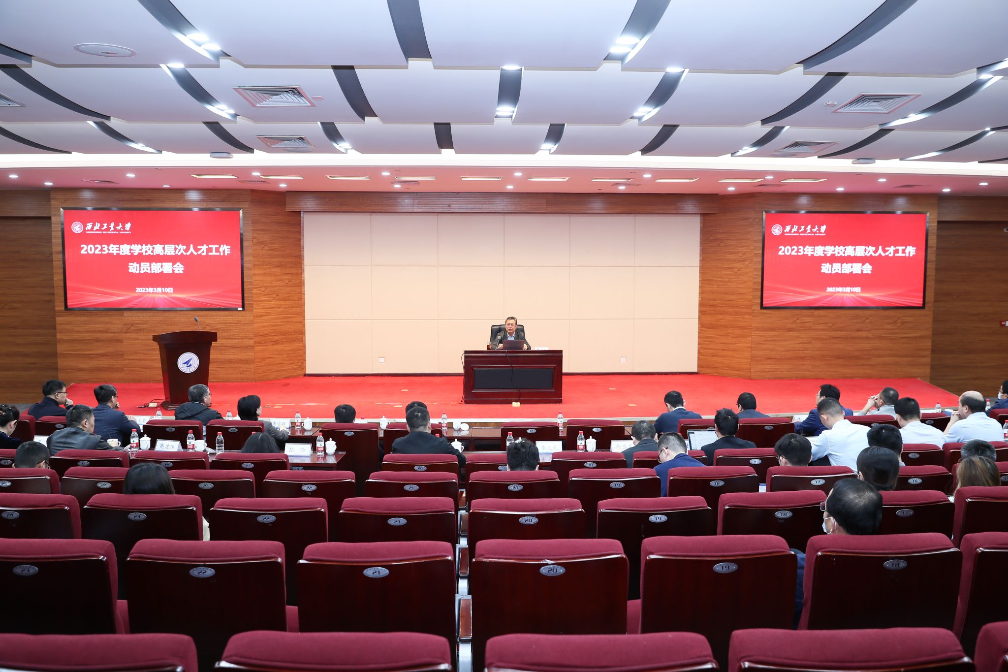 西工大新闻网3月10日电(人事处)为深入贯彻党的二十大精神,深入实施新时代人才强校战略,推进学校人才工作高质量发展,3月10日上午,鸭脖官网召开2023年度高层次人才工作动员部署会。党委常委、副校长侯成义,学校人才工作领导小组成员单位负责人,各学院(研究院、中心)党政负责人、人才工作领导小组主要成员、办公室主任、人事秘书,异地创新机构负责人,学校引才大使等180余人参加了会议。会议由人事处副处长张忻主持。