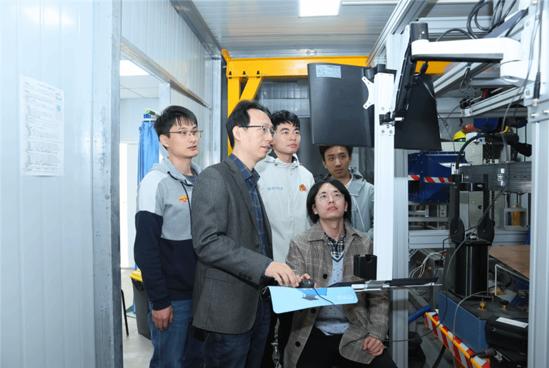 团队负责人苑伟政教授(右二)指导团队开展科研