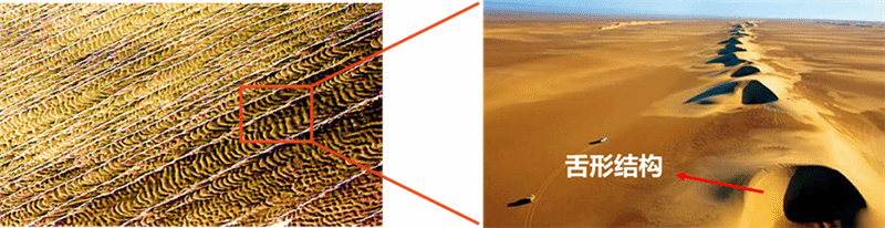 库姆塔格沙漠横卧于阿尔金山与罗布泊之间,受独特地形影响,8级以上大风天数占全年近三分之一,且来风方向并不固定,因此其沙垄表面形成了世界独有的“舌形分形结构”。这种特殊的风向条件和不同寻常的结构赋予了团队研究灵感,“格物致知、师法自然,这或许就是大自然给出的降低风阻的‘最优解’。”团队负责人苑伟政教授笑着说到。