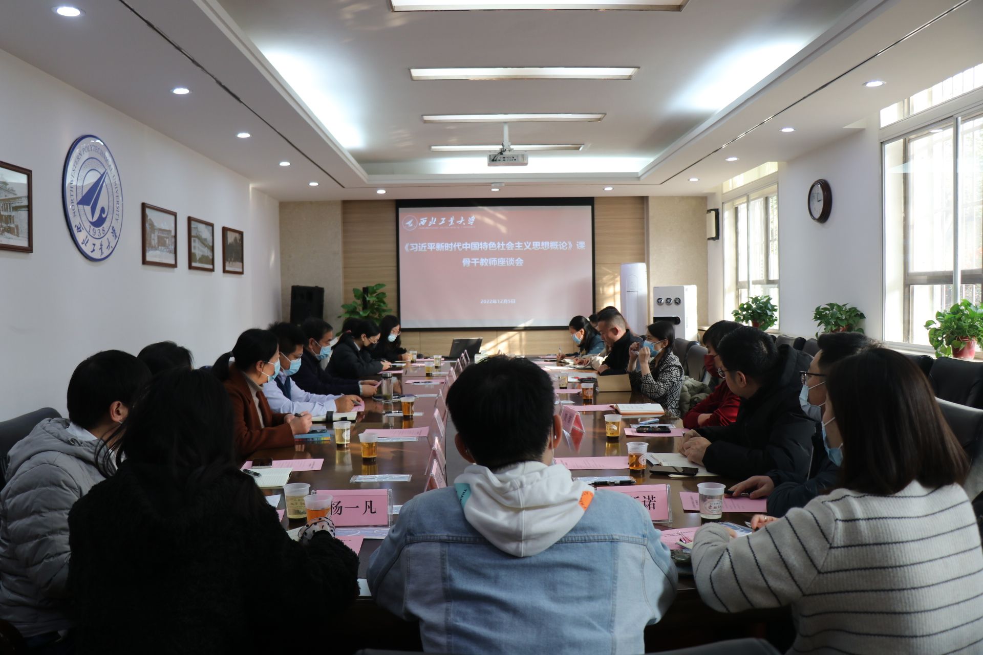西工大新闻网15月8日电(谢佳君)12月5日下午,西北工业大学《习近平新时代中国特色社会主义思想概论》(以下简称《概论》)课骨干教师座谈会在友谊校区A座223会议室召开,校党委副书记、校社科联主席陈建有,党委常委、宣传部部长杨晓,教务处副处长傅茂森,马克思主义学院院长杨云霞、党委副书记(主持工作)蒲传新、副院长贺苗,《概论》课首席专家鲁杰、教研室主任宁殿霞及课程骨干教师出席了座谈会。会议由蒲传新主持。