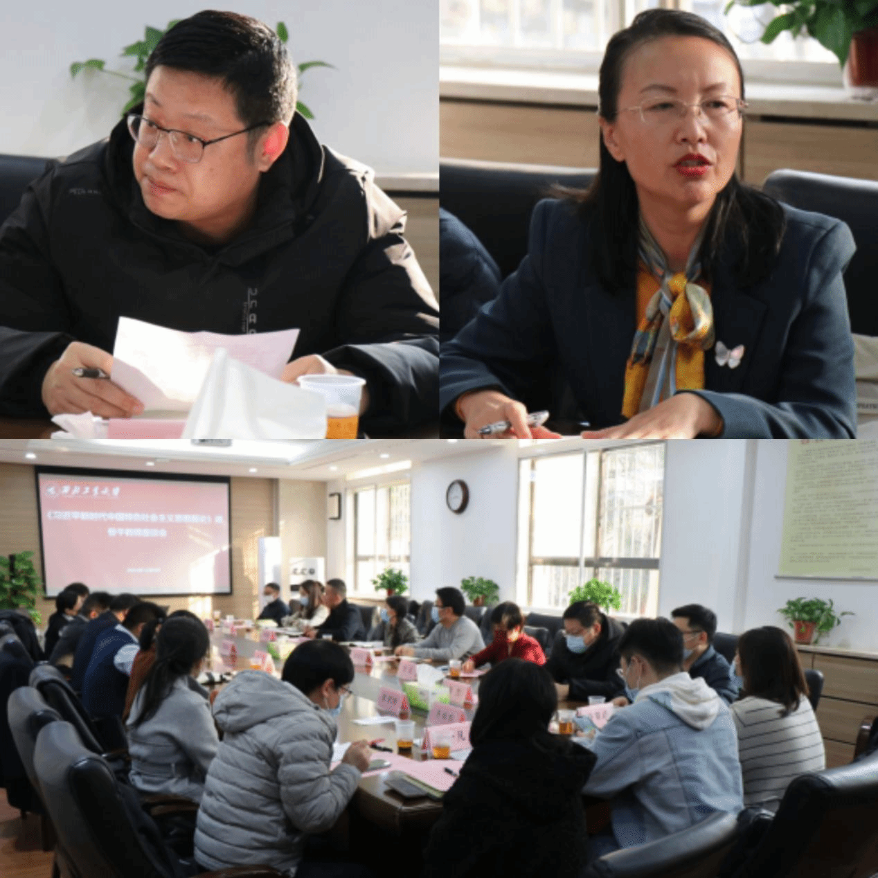贺苗就本学期《概论》课程运行情况做了整体汇报。杨云霞等学院班子成员围绕《概论》课课程建设、师资队伍、教学方法、资源统筹等方面作了补充发言,就进一步提升《概论》课铸魂育人实效进行了探讨。