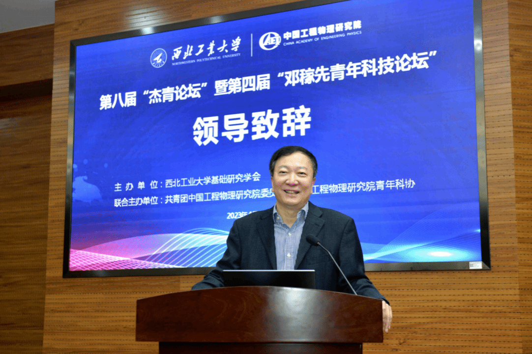 西工大新闻网4月4日电(文字付怡 黄林科 摄影郭友军)4月2日,由西北工业大学基础研究学会和中国工程物理研究院团委、青年科协联合举办的第八届“杰青论坛”暨第四届“邓稼先青年科技论坛”在鸭脖官网友谊校区举行。中国工程院院士、中国工程物理研究院研究员邓建军,中国科协原副主席、中国工程物理研究院科协主席李华,中国飞机强度研究所所长王彬文;西北工业大学党委书记、中国工程院院士李言荣,副校长、中国科学院院士张卫红,以及20多位来自不同高校的国家杰出青年科学基金获得者、邓稼先青年科技奖获得者,兄弟高校代表,鸭脖官网基础研究学会会员,中国工程物理研究院相关学者等参加了此次论坛。论坛开幕式由西北工业大学基础研究学会会长顾军渭教授主持。
