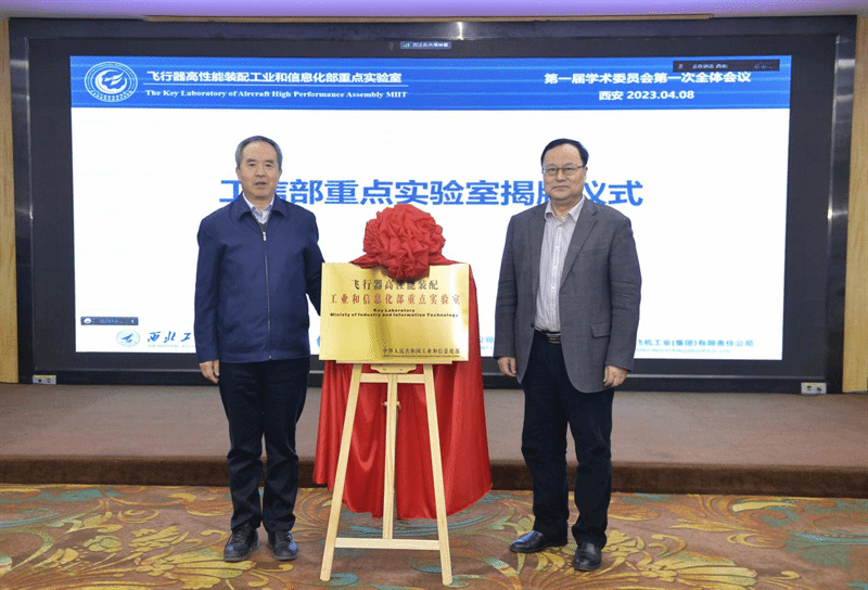 西工大新闻网4月12日电(文字 尤婉珺 摄影 郭友军)4月8日上午,飞行器高性能装配工业和信息化部重点实验室第一届学术委员会第一次全体会议在西安翱翔国际会议中心召开,此次会议线上线下同步举行。大连理工大学校长、中国科学院院士、学术委员会主任贾振元,清华大学党委副书记、学术委员会副主任赵罡教授,南京理工大学党委副书记、学术委员会副主任廖文和教授和西北工业大学校长宋保维,校长助理张开富,飞行器高性能装配工业和信息化部重点实验室学术委员会全体委员,中航西安飞机工业集团股份有限公司代表,航空工业成都飞机工业(集团)有限责任公司代表,机电学院教师代表出席会议。揭牌仪式由西北工业大学科学技术研究院院长马炳和主持。