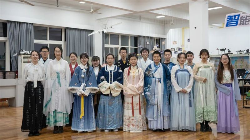 课堂上,学生们身着汉服进行掐丝珐琅制作