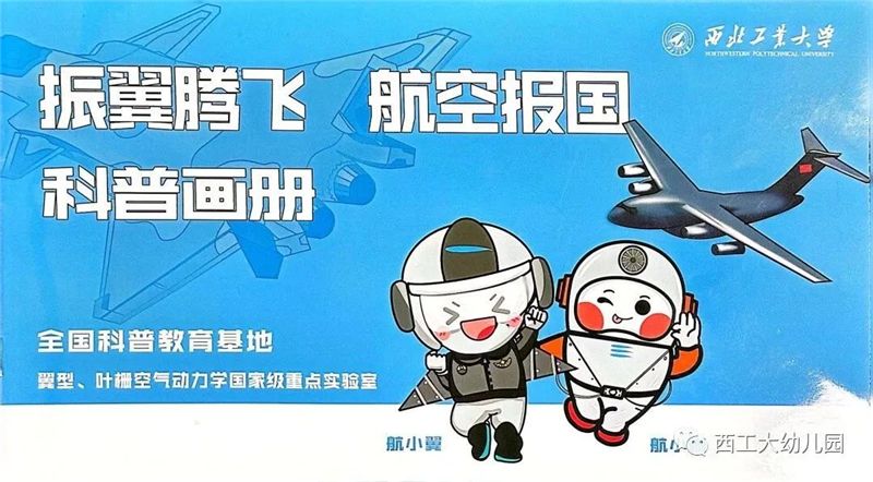 为了迎接孩子们的到来,西工大航空学院飞行器空气动力学系的领导和老师们进行了精心的安排和准备,还为幼儿园赠送了《振翼腾飞 航空报国》科普画册。通过科普画册,孩子们提前认识了“航小翼”和“航小栅”。