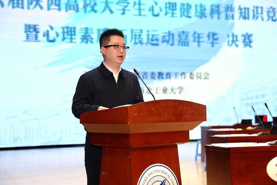 下午14:30,决赛竞答环节正式开始。中共陕西省委教育工委学工部二级调研员魏星,陕西省高校心理素质教育研究会会长郑林科,党委学生工作部部长、学生处处长吴闻川出席活动。吴闻川致开场辞,对到场的领导、师生表示热烈欢迎,并强调党的二十大提出“健康中国”战略,对大学生心理健康发展也提出更高要求,鸭脖官网希望与各兄弟高校携手,共同推进我省大学生心理育人工作。