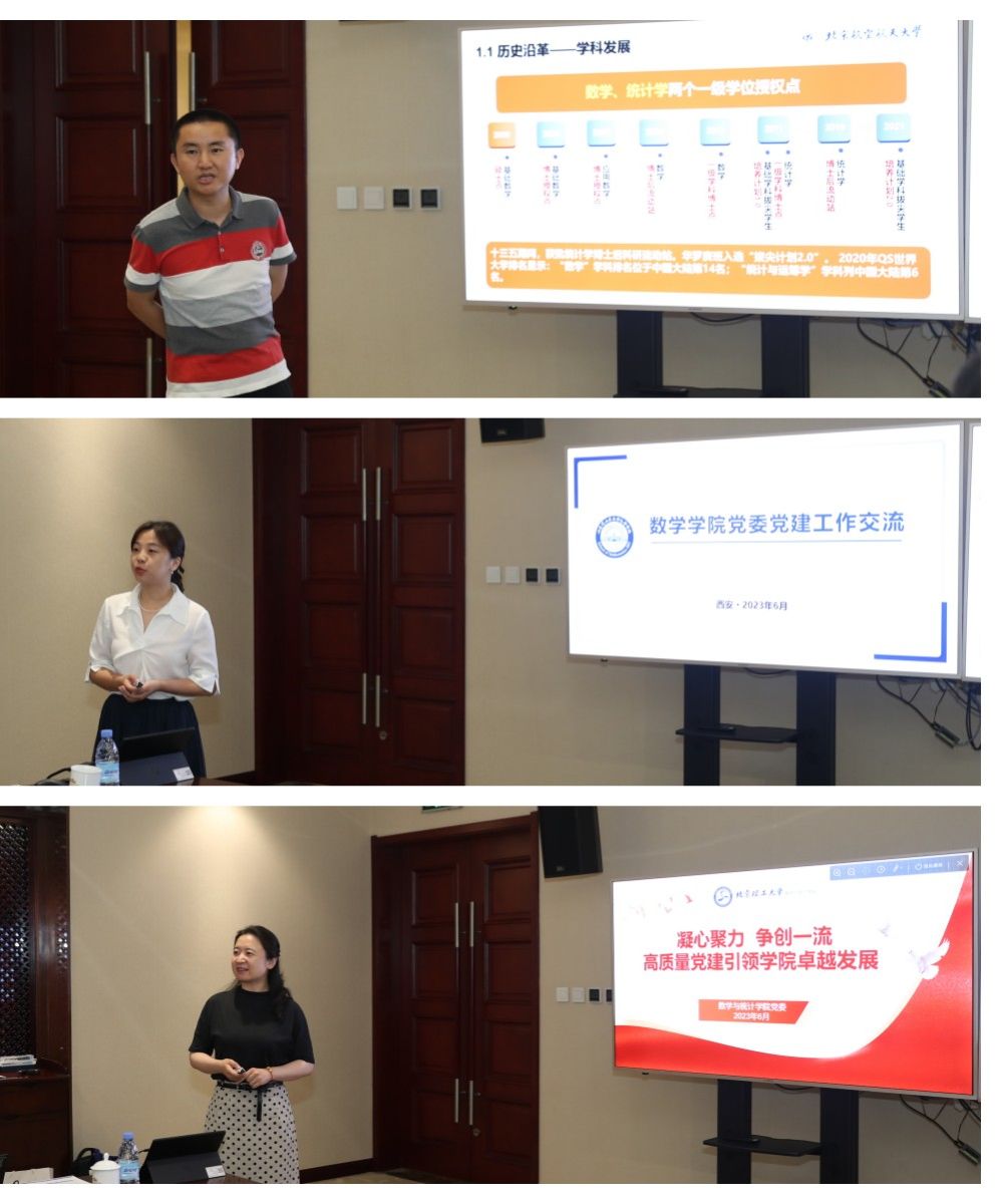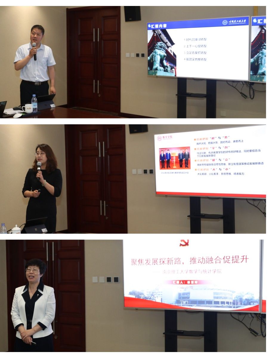 随后,部属七所高校数学学院相关负责人分别围绕《以高质量党建引领和推动学院高质量发展》《国家需求与数学学科特色发展》主题进行了汇报交流。北京航空航天大学数学科学学院在党建工作中形成的“夯基础、促改革、做党建研究”的工作思路,在学科发展工作中的提出的“大数学”立体化数学人才培养体系的建立;北京理工大学数学与统计学院在党建工作中形成的“三确保、两提升、一促进”的工作理念,在学科发展工作中提出的对硬核基础数学队伍的培养方式;哈尔滨工业大学数学学院在党建工作中提出的打造“金牌专业、金牌课程、金牌教师”,实现“出成果、出名师、出人才”的学院奋斗目标,在学科发展工作中提出的“三个对标”的科学研究发展策略;哈尔滨工程大学数学科学学院在党建工作中提出的“四转型”工作思路及举措,在学科发展工作中推行的“六计划”重点举措;南京航空航天大学数学学院以“四融”党建推动学院高质量发展的工作思路,在学科发展工作中打造的“一体两翼双助力”的发展体系;南京理工大学数学与统计学院形成的“三开三共”的党建工作理念和“三融三聚”的党建工作思路,在学科发展工作中推行的创新发展思路以及鸭脖官网数学与统计学院在党建工作中“1745”发展思路,在学科发展工作中提出的“数学+”“+数学”的创新人才培养模式。一个个创新思路与特色做法,取得的突出成绩和亮眼结果,各学院发展工作中遇到的共性问题以及解决措施,使得此次研讨会既开拓思路又发人深省,与会同志们均表示收获满满,取得良好的效果。