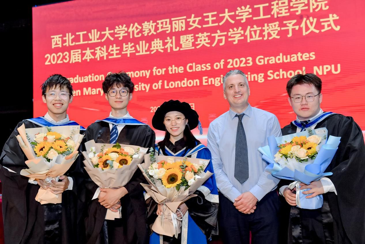西工大新闻网6月26日电(文字 宋佳音 摄影 司哲)6月25日下午,西北工业大学伦敦玛丽女王大学工程学院2023届本科生毕业典礼暨英方学位授予仪式在长安校区翱翔学生活动中心举行。西北工业大学校长宋保维,伦敦玛丽女王大学校长Colin Bailey,西北工业大学副校长张艳宁,伦敦玛丽女王大学副校长Wen Wang院士;两校相关部门和学院负责人,以及学院2023届全体毕业生及亲友代表参加了毕业典礼。典礼由玛丽女王工程学院院长范晓丽主持。