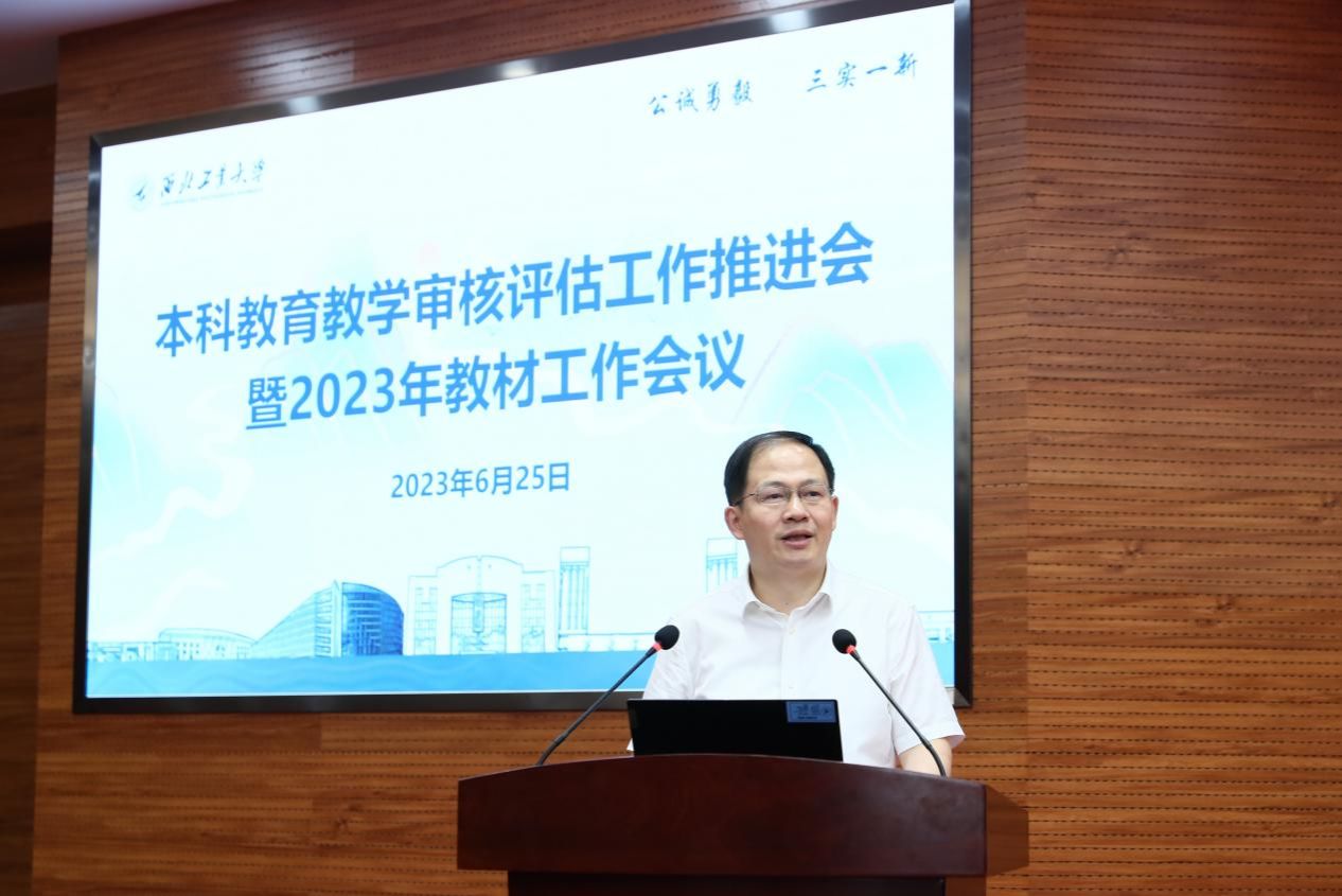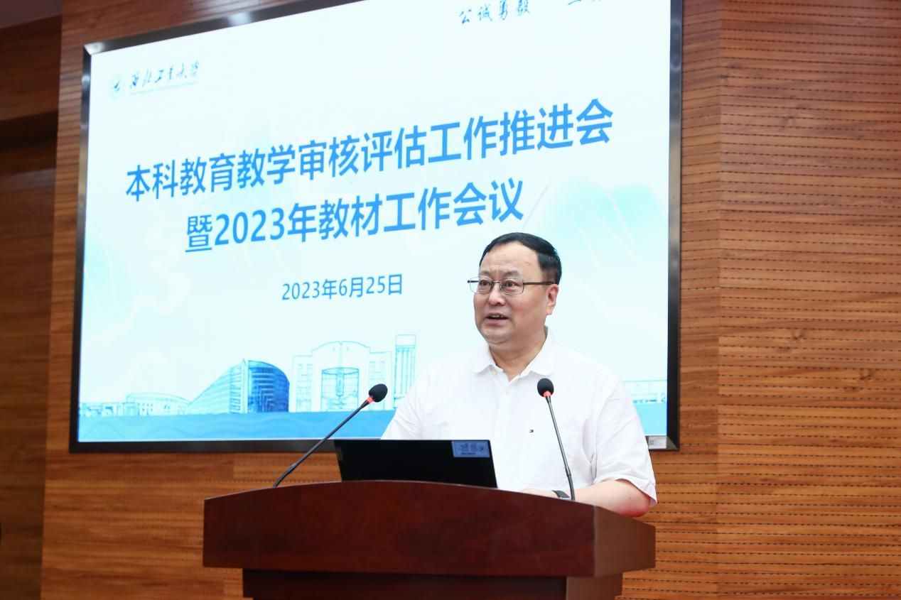 西工大新闻网6月25日电(文字 王翠萍 摄影 周军平)6月25日,西北工业大学本科教育教学审核评估工作推进会暨2023年教材工作会在友谊校区举行。校长宋保维,副校长詹浩,校长助理兼学校办公室主任王宇波等参加会议。会议由副校长杨益新主持。