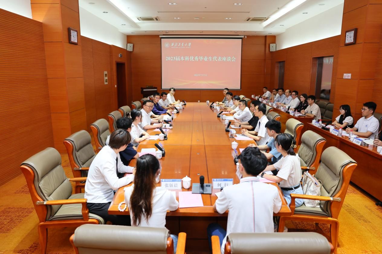 座谈会上,毕业生代表踊跃发言,现场气氛温馨热烈,同学们深情回顾了在西工大的美好时光,分享交流了在校期间的成长与收获,言语间充满了对母校、恩师的感激、不舍与祝福。他们结合自身的学习生活体会,对母校的未来发展积极建言献策,就学校的校友服务交流、科研实践平台、国际学术交流、职业规划与择业指导、创新创业教育、后勤保障等方面提出了意见和建议。大家纷纷表示,无论是继续深造还是走上工作岗位,在未来的人生战场上,他们会将“公诚勇毅”校训和“三实一新”校风作为追求卓越的行动自觉和内生动力,踔厉奋发,奋勇拼搏。