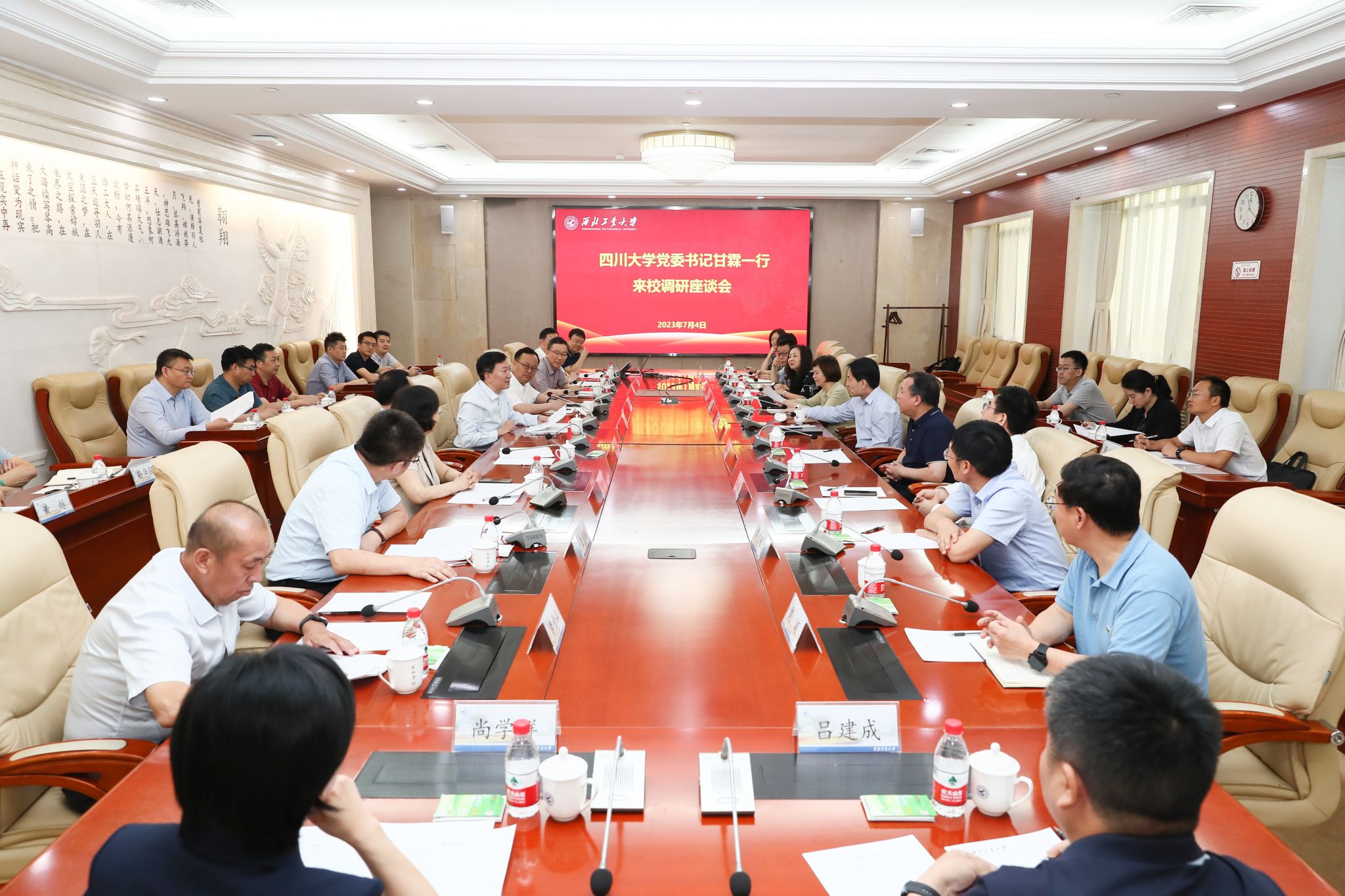 甘霖对学校的热情接待表示感谢,并对西工大一直以来在科学研究、人才培养等方面的办学成就表示敬意。他指出,四川大学是一所研究型综合大学,如何在综合性大学中又好又快地发展工科,闯出一条工科发展的新路子是当下学校急需破解的难题。他表示,西工大是一所聚焦国家重大战略需求,心怀“国之大者”,具有家国情怀的高校,尤其特色工科的发展值得学习。他说,期待两校加强合作交流,共同建设中国特色世界一流大学。