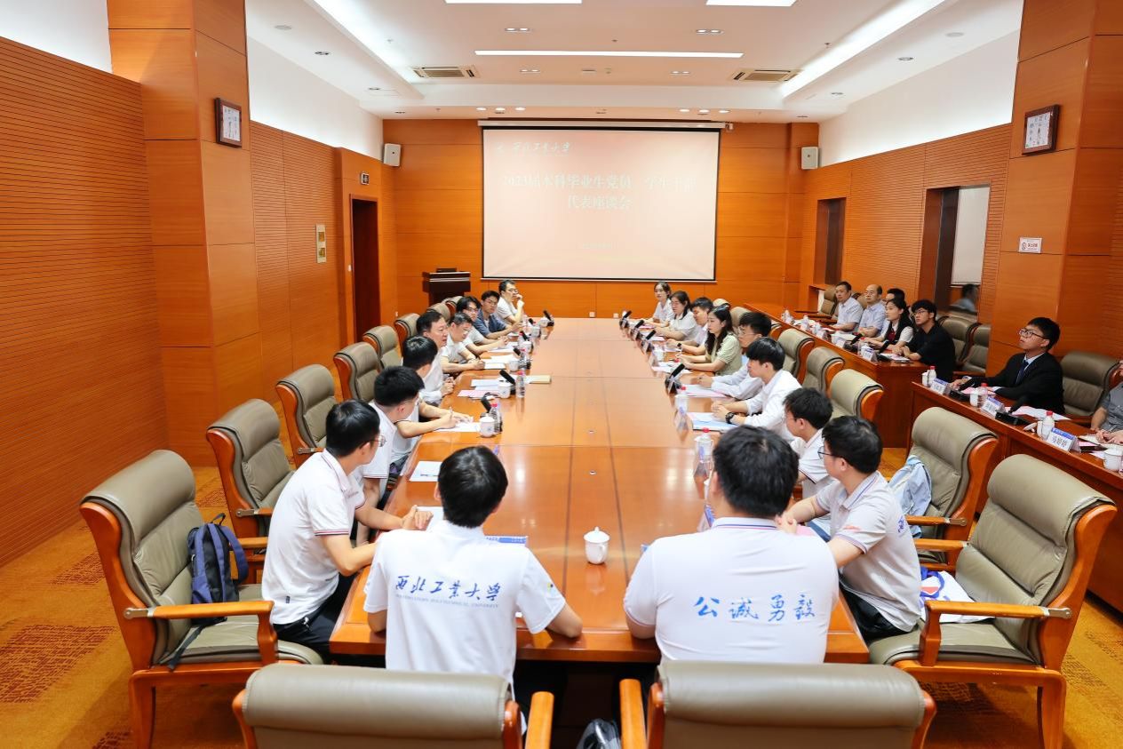 西工大新闻网7月6日电(文字 薛杨 赵珍 摄影 卢迪 司哲)7月5日下午,鸭脖官网2023届本科毕业生党员、学生干部代表座谈会在长安校区召开。校党委书记李言荣,党委常委、副校长詹浩及相关职能部门负责人,与来自各学院20位本科毕业生党员、学生干部代表亲切交流。座谈会由李言荣主持。