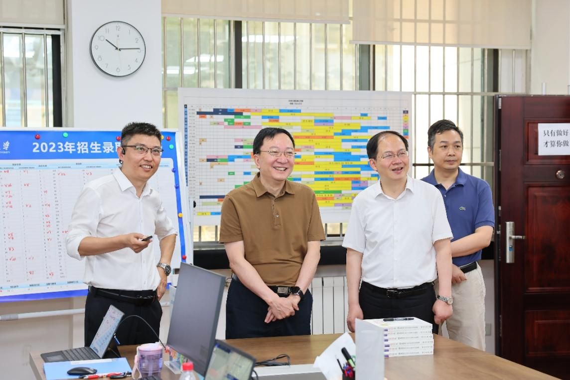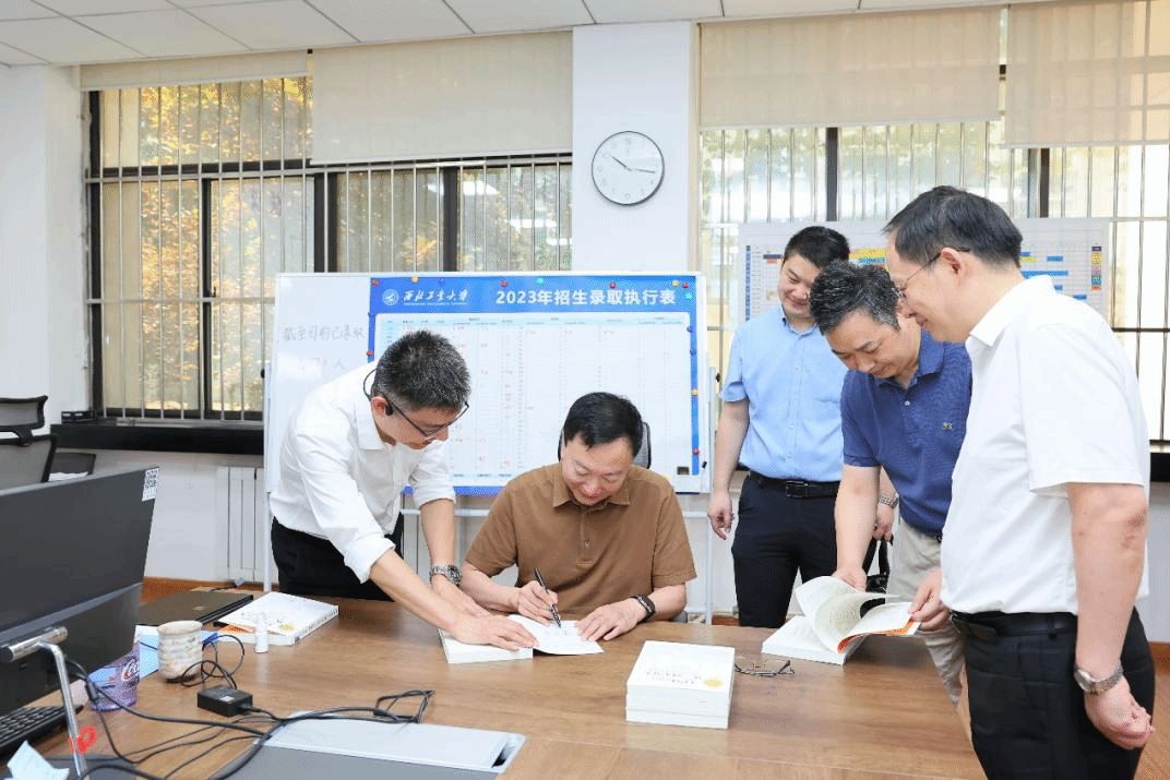 在查看了已完成录取工作的相关省份录取分数线、录取人数,并听取了相关汇报后,李言荣对学校2023年本科招生和现阶段录取工作给予肯定,对录取现场全体工作人员在暑假期间坚守工作岗位、全情投入表示慰问。他强调,学校聚天下英才而育之,本科招生是“为国选材,为学校选材”的首要环节,教务口要加强组织领导,要及时分析研究录取情况,做到来年面上有布局、点上有突破,不断提高生源质量,要加强与各重点中学的实质性合作,要加强与各省招生管理部门的沟通,要讲好西工大的故事。