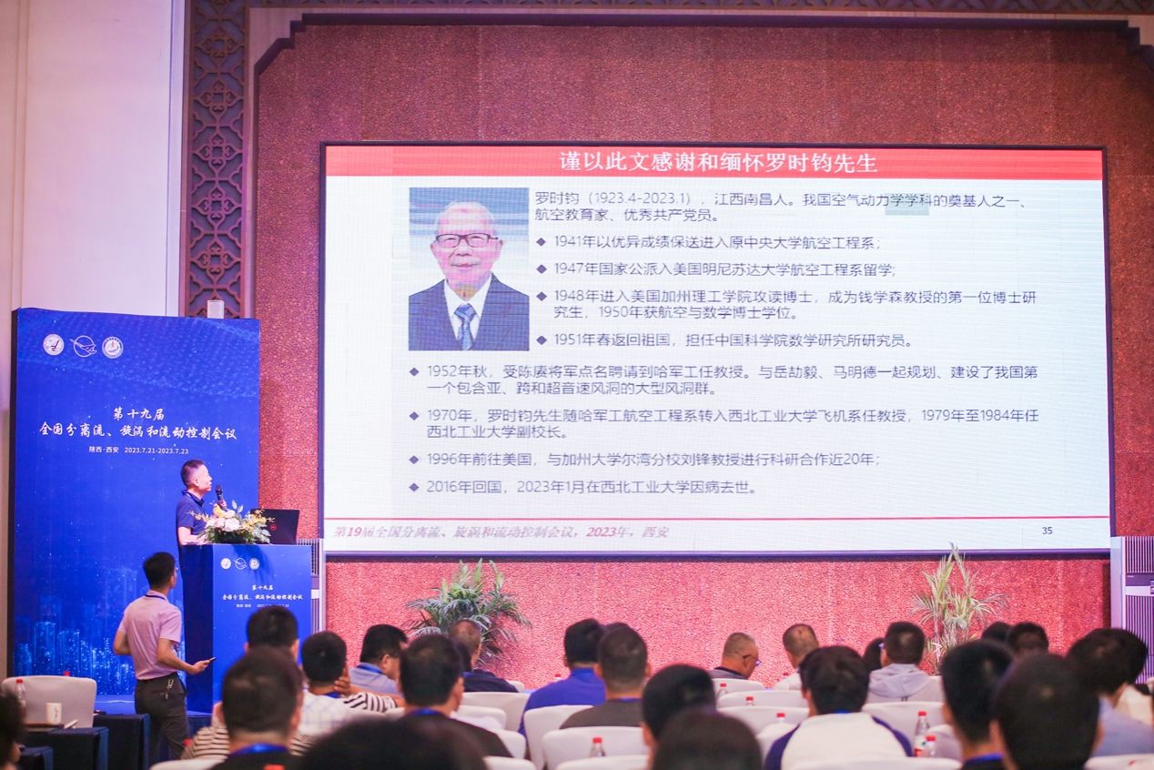 本次会议针对空气动力学、湍流、流动控制、流固耦合、气动声学等开展主题报告,包括大连理工大学吴锤结教授的《湍流数值模拟建模理论基础再探究与LMS方法》、西安交通大学张家忠教授的《非定常流动分离及漩涡的本征流动结构分析方法及其动力学性质研究》、北京大学杨越教授的《基于运动物体尾流信息的气动力预测-理论与数据驱动模拟比较研究》等51个学术汇报,与会专家学者针对这些报告展开了热烈讨论与深入交流。西北工业大学孟宣市教授对已故我国著名空气动力学专家、西北工业大学罗时钧教授进行了缅怀、并介绍了罗时钧教授一生的科研经历以及其对我国空气动力学研究的贡献。