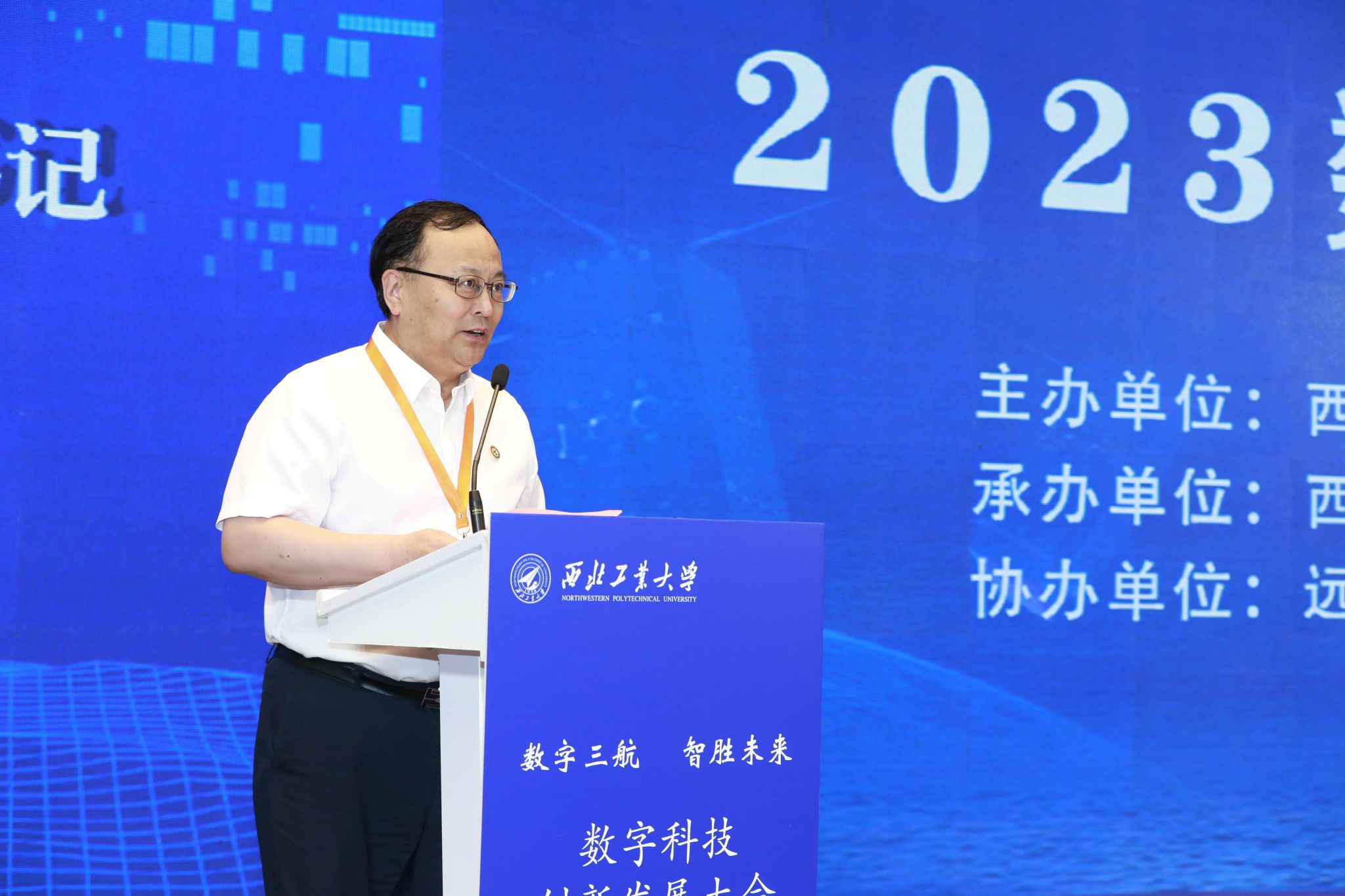 西工大新闻网7月30日电(符旭 米雪)7月29日,由西北工业大学主办,西北工业大学北京研究院、中关村科技园区通州园管理委员会承办,远望智库、北京三航科创投资管理有限公司协办的“2023数字科技创新发展大会”在北京城市副中心举办。中国工程院院士邱志明,中国工程院院士张平,中国工程院院士朱广生,中国科学院院士于登云,西北工业大学校长宋保维,工业和信息化部信息技术发展司一级巡视员(主持工作)王建伟,北京市经济和信息化局局长姜广智,北京市通州区区长郑皓,中国航空工业集团有限公司总经理郝照平,中国航天科技集团有限公司副总经理张宏俊出席会议。