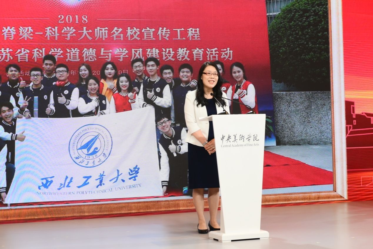 活动现场,孙瑜从西北工业大学的人才培养目标出发,介绍了学校具有学科特色的戏剧美育工作及以戏剧美育赋能总师型人才培养的路径探索,指出学校将戏剧美育理念贯彻于立德树人、培根铸魂的人才培养过程中,“以大爱之心育莘莘学子”,用艺术的方式传播科学家精神。