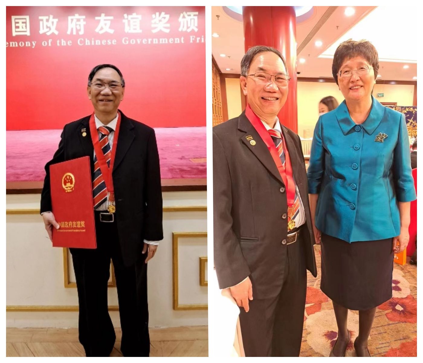 蔡贤德院士在中国政府友谊奖颁奖仪式上受人力资源和社会保障部王晓萍部长的接见(蔡贤德院士本人供图)