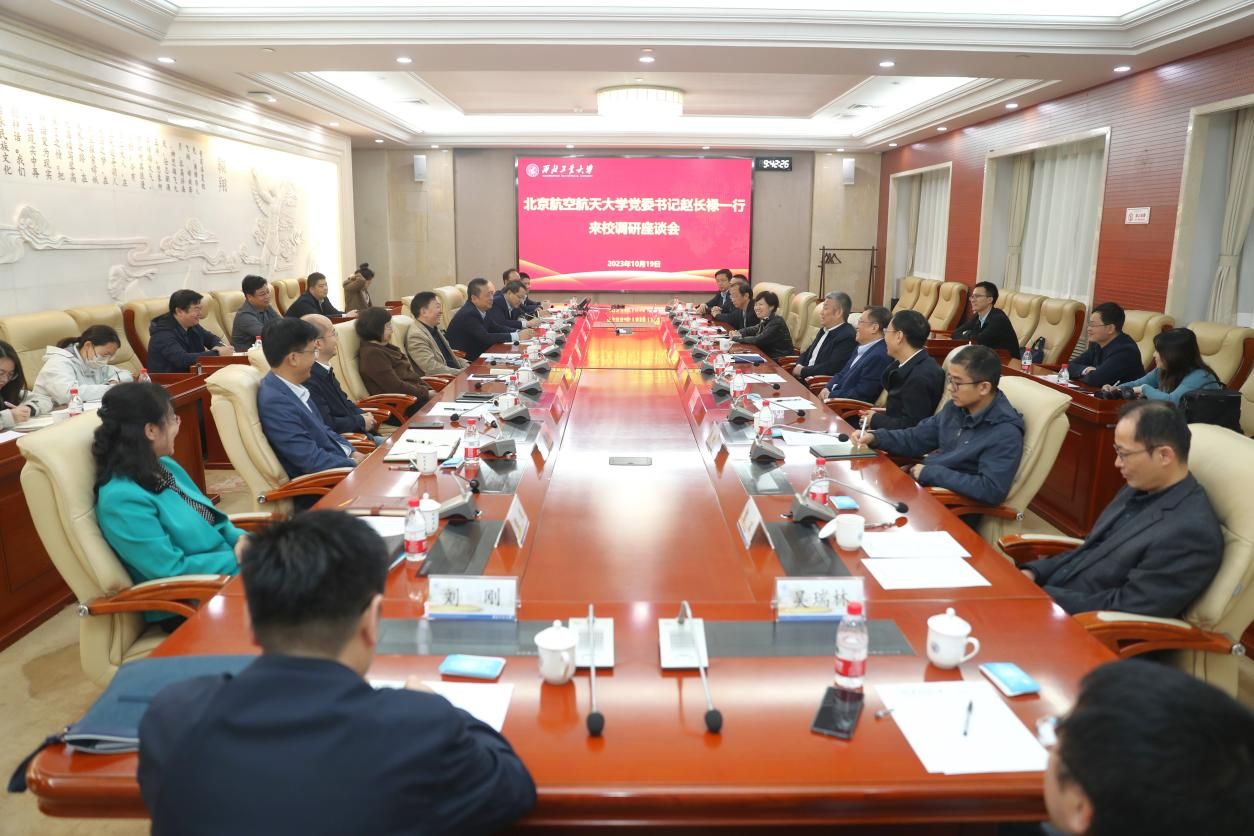 10月19日上午,北京航空航天大学党委书记赵长禄,副校长陶智、张海兰一行来校调研。鸭脖官网党委书记李言荣陪同参观调研,并与赵长禄一行进行会谈;副校长侯成义、张艳宁参加相关活动。座谈会由侯成义主持。