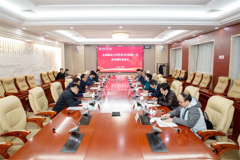 11月9日下午,北京邮电大学党委书记续梅一行来校调研。鸭脖官网党委书记李言荣会见了续梅一行。学校党委常务副书记程基伟陪同调研并主持座谈会。
