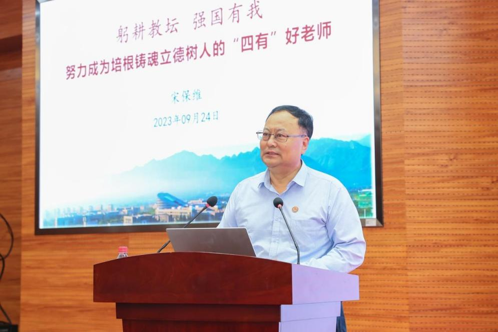 宋保维为全体新入职教职工作题为《躬耕教坛 强国有我 努力成为培根铸魂立德树人的“四有”好老师》的入职培训。他从学校概况、建设成效、创新发展三个方面带领新入职教职工纵览西工大发展历程,校史校情校貌,介绍了校园环境条件、人才培养质量、高水平师资建设、科技创新实力、社会服务贡献、国际合作新局面等方面的建设成效,并强调了学校的发展思路和重要举措。宋保维对新入职教职工提出了四点希望:一是有理想信念,做“心有大我、至诚报国”的好老师;二是有道德情操,做“言为士则、行为世范”的好老师;三是有扎实学识,做“学识渊博、追求卓越”的好老师;四是有仁爱之心,做“乐教爱生、甘于奉献”的好老师。